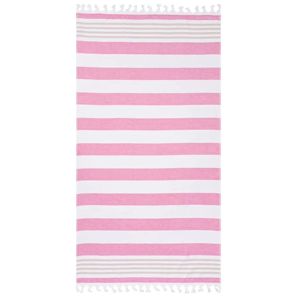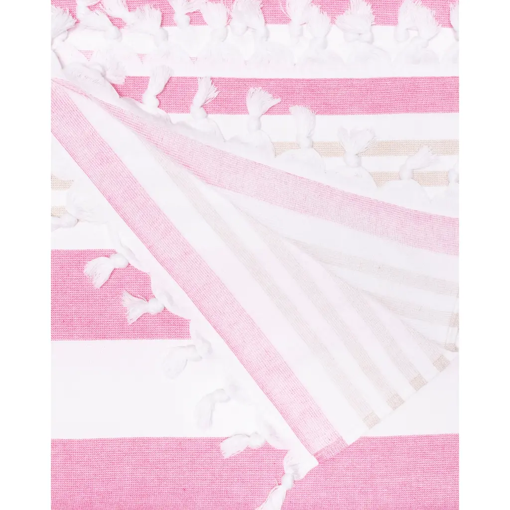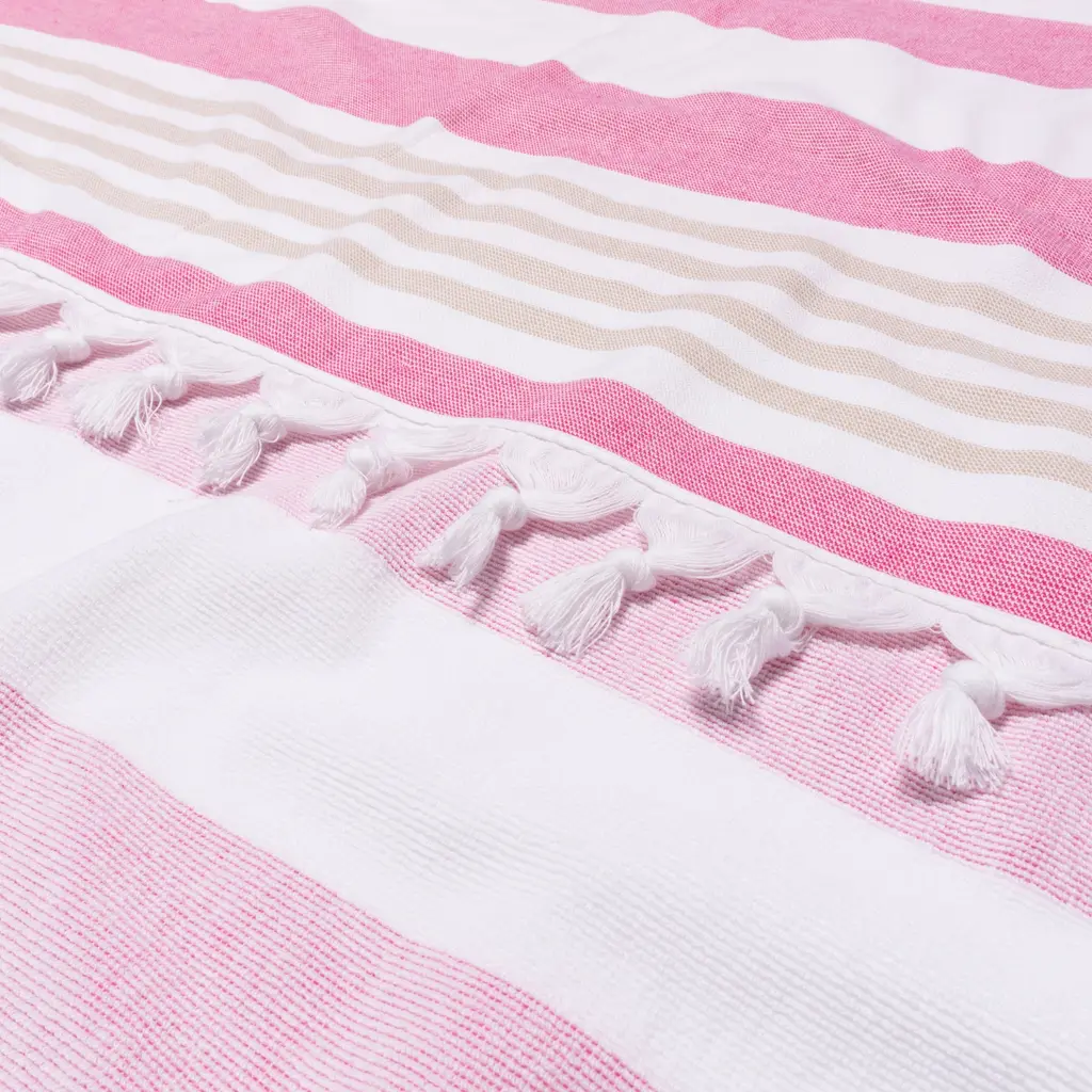Superior Bahari Stripe Fouta Beach Towel With Tassels - 35" X 68" - Cerise