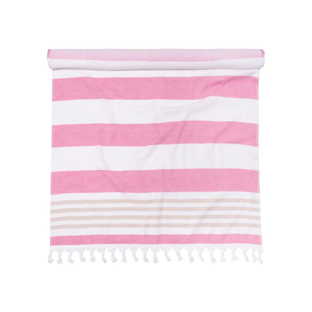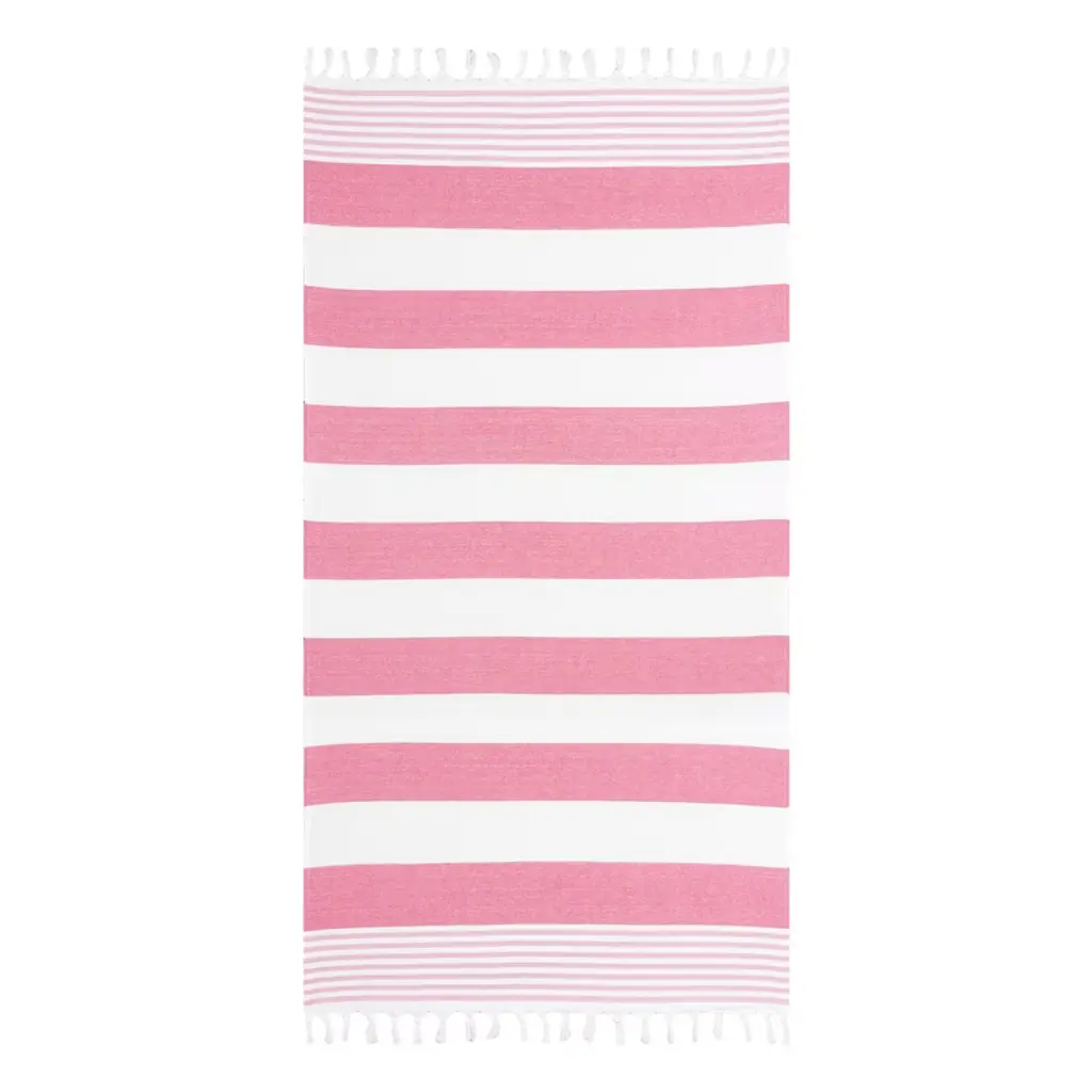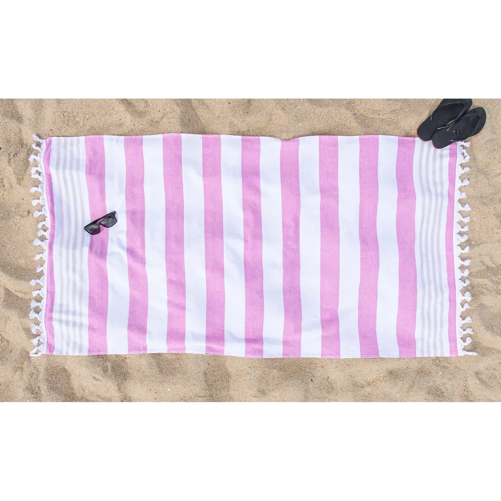 Superior Bahari Stripe Fouta Beach Towel With Tassels - 35" X 68" - Cerise