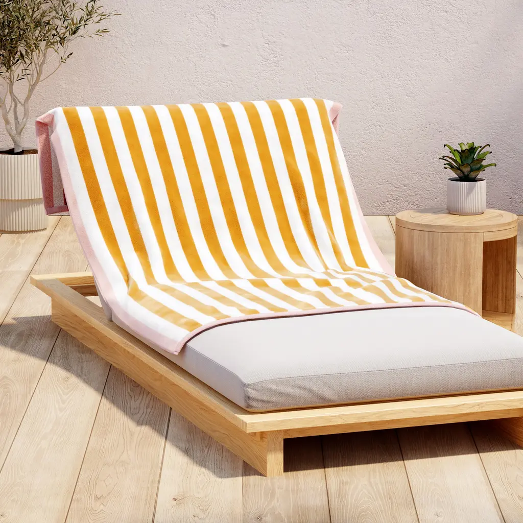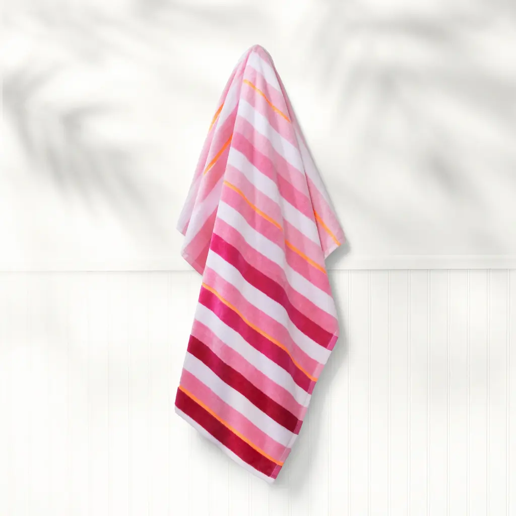 The vivid and cheerful design of the Bahari Stripe Fouta Beach Towel is the perfect pool or beach accessory. This oversized beach towel is crafted from 100% Cotton to help get you dry quickly after a dip in the ocean, pool, or hot tub. On one side, this towel features a woven texture that is soft to the touch and an absorbent, fast-drying terry cotton construction on the other side. Get ready to soak up some much-needed vitamin sea with this varying stripe design in an array of bright, seasonable color options with tassel details on the ends for an added dose of modern style.Features:Dimensions: