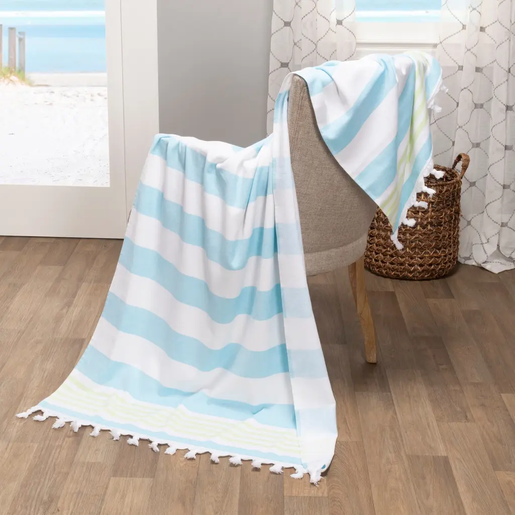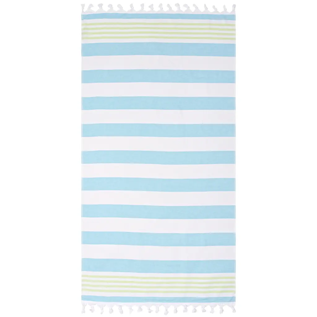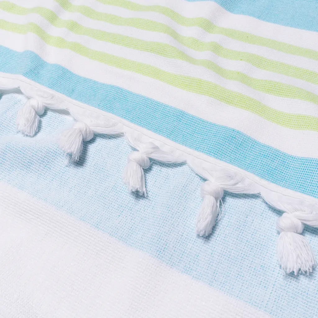 Superior Bahari Stripe Fouta Beach Towel With Tassels - 35" X 68" - Key West