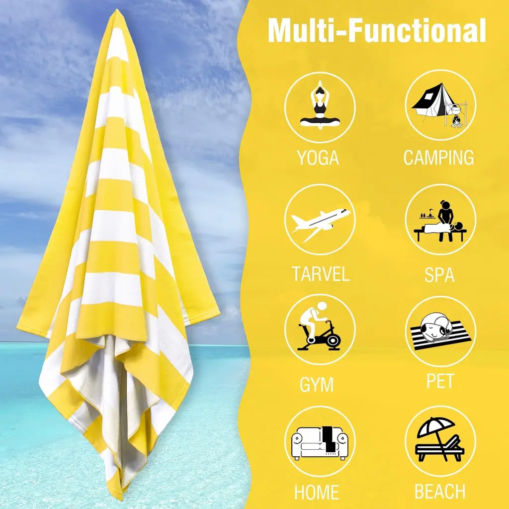 The vivid and cheerful design of the Bahari Stripe Fouta Beach Towel is the perfect pool or beach accessory. This oversized beach towel is crafted from 100% Cotton to help get you dry quickly after a dip in the ocean, pool, or hot tub. On one side, this towel features a woven texture that is soft to the touch and an absorbent, fast-drying terry cotton construction on the other side. Get ready to soak up some much-needed vitamin sea with this varying stripe design in an array of bright, seasonable color options with tassel details on the ends for an added dose of modern style.Features:Dimensions: