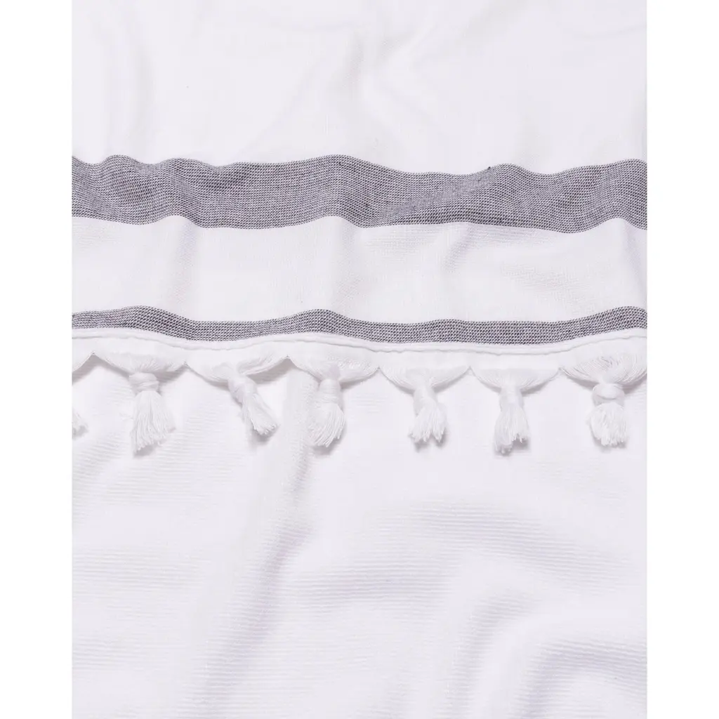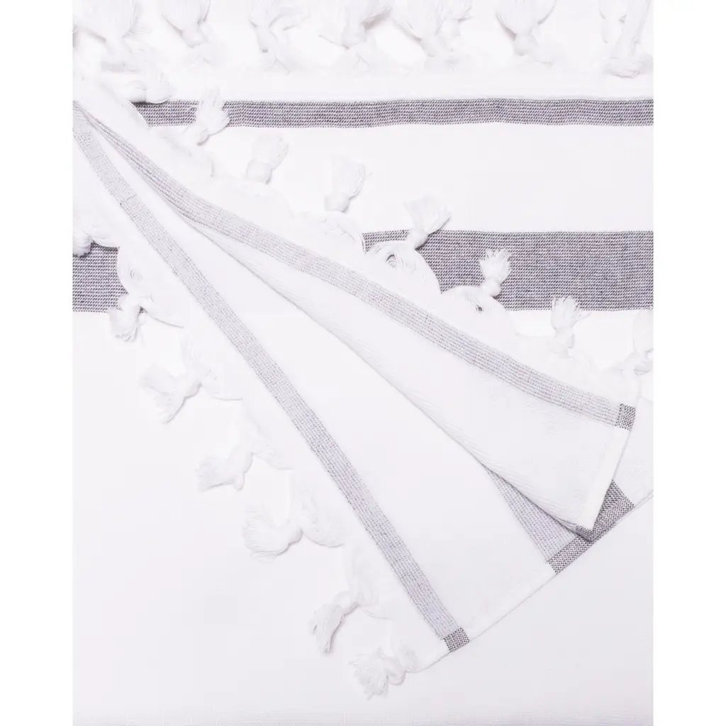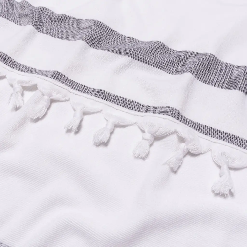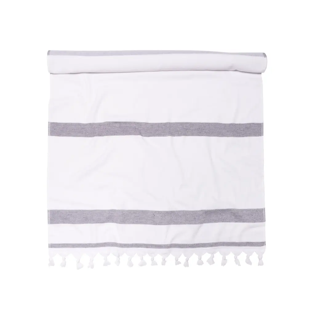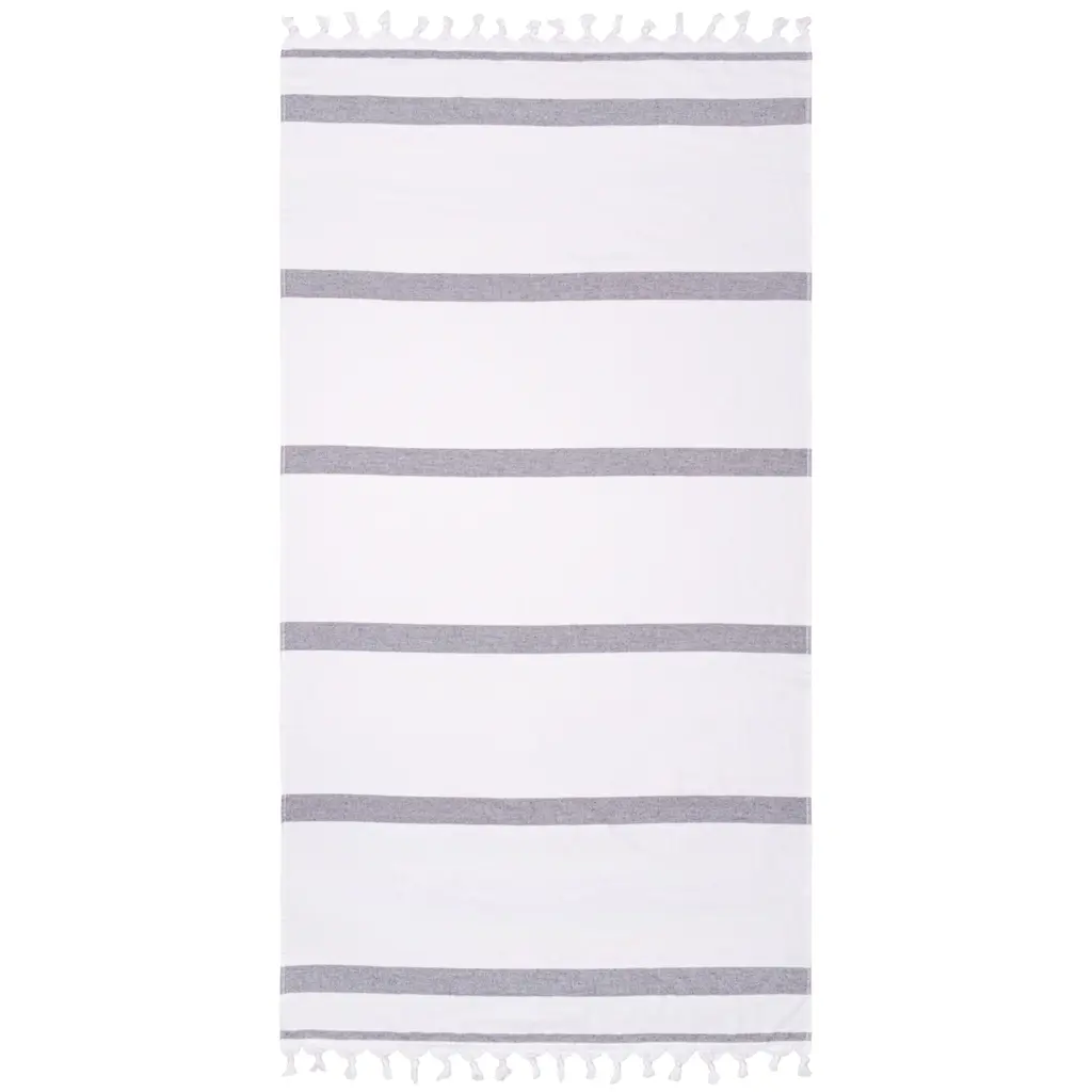 Superior Kai Stripe Fouta Beach Towel With Tassels - 35" X 68" - Black