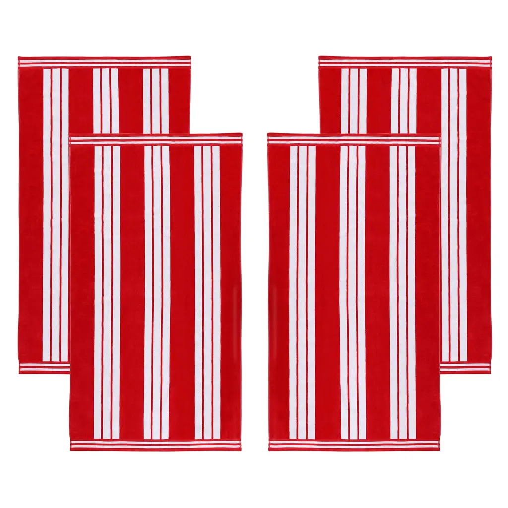 Superior Striped Large Oversized Cotton Beach Towel - Set Of 4 - Red