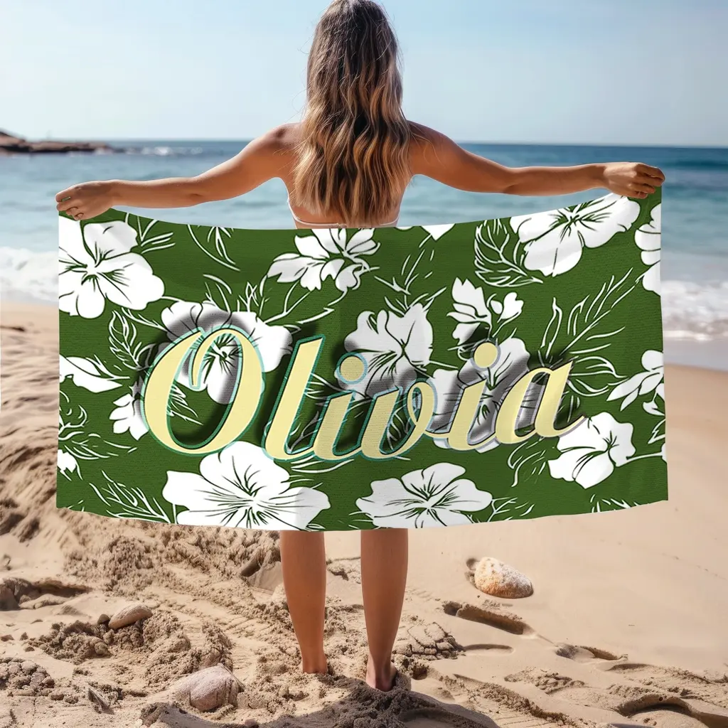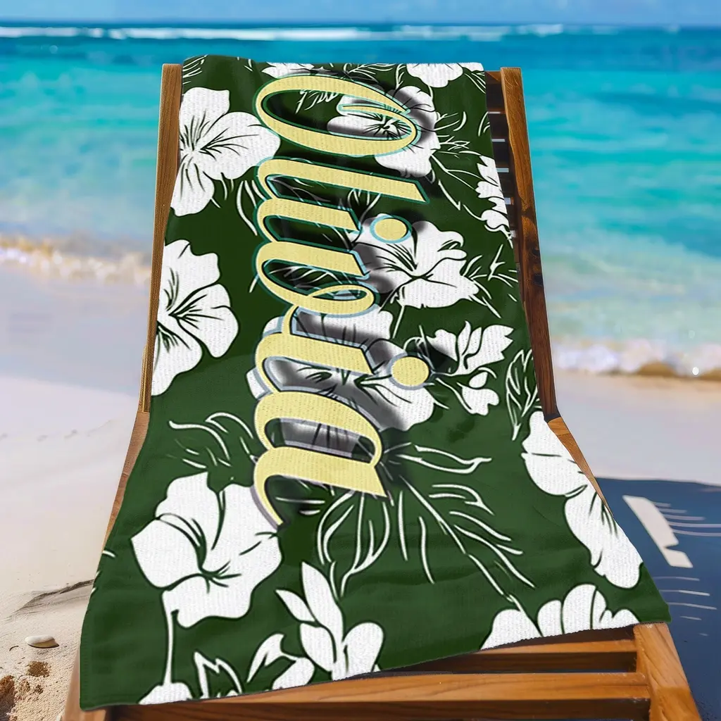 A beach towel like no other! Beach bums and pool fans will love this thirsty towel with a bold design featuring their name. It will make a unique statement no matter where their summertime adventures take them. TIPS:Sent your custom name to Google Form attaching order number and date: forms.gle/gFcTLAXoSBk7DNGn9 Features: PREMIUM QUALITY: This towel takes fun in the sun to another level. made from 300g highly absorbent microfiber matching 30"x60" standard size. EXTREMELY SOFT: Our products are durable polyester towels that are super soft, comfortable and fit against your skin. It is much softer than a standard towel. Professionally stitched hemmed edges for added strength and durability. VERSATILE: This oversized beach towel is not only a great accessory for your beach vacation but can also be used as a wrap, hair towel, or beach blanket. Its versatility makes it perfect for use at the beach, cruises,swimming pool, gym, sauna, hotel, yoga, camping, and more. A GIFT FOR ALL SEASONS: There's nothing like fun in the sun, and this towel takes it to another level. A thoughtful gift for your favorite beachgoer or water lover, it's a unique choice for vacations, family reunions, spring break or just because!