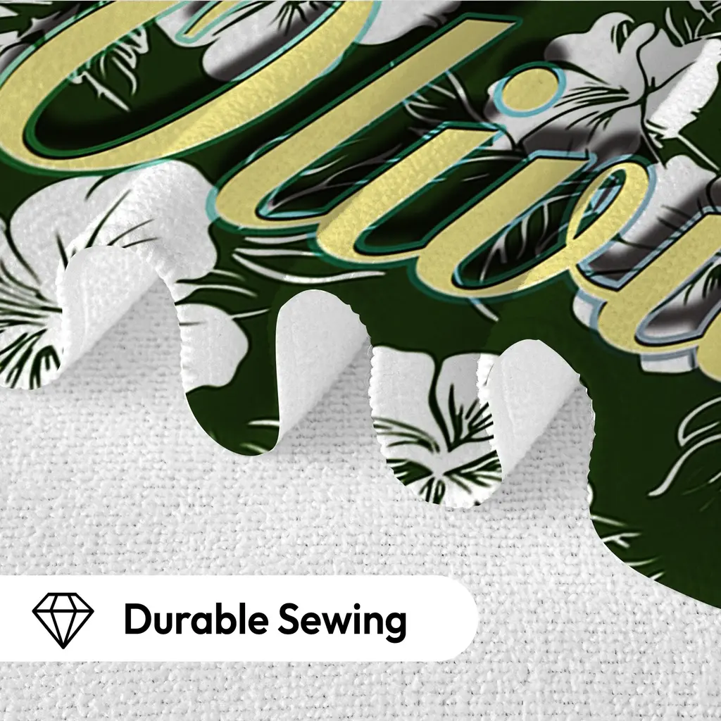 Tropical Palm Tree Pineapple Personalized Beach Towel With Name, Custom Name Beach Towel 30"x60" - Green