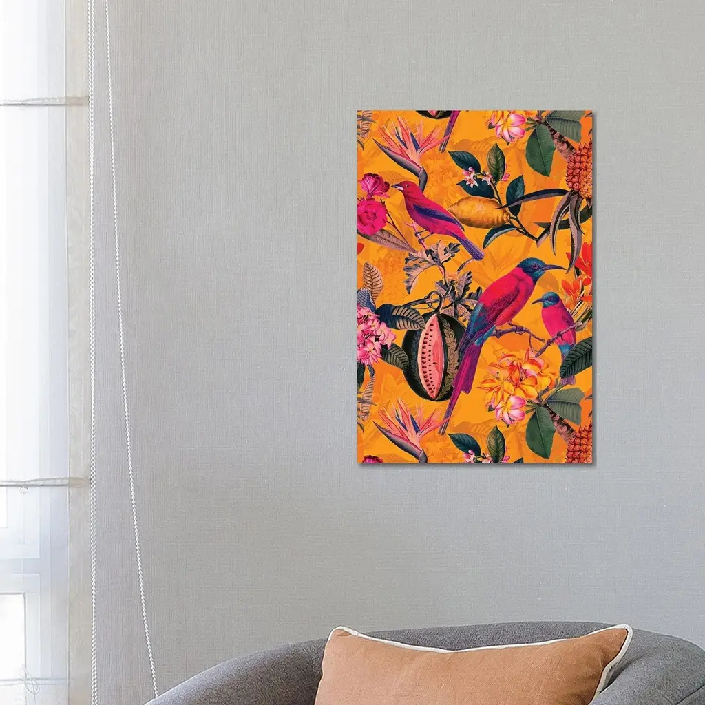This tropical themed beach towel, "Tutti Fruity Stay Wild," is a fun design. This design stands out by featuring bright, vibrant colors of turquoise, coral, green and yellow. Hand painted birds and tropical elements add beautiful texture to the design. A pop of color will definitely be added to any beach trip!