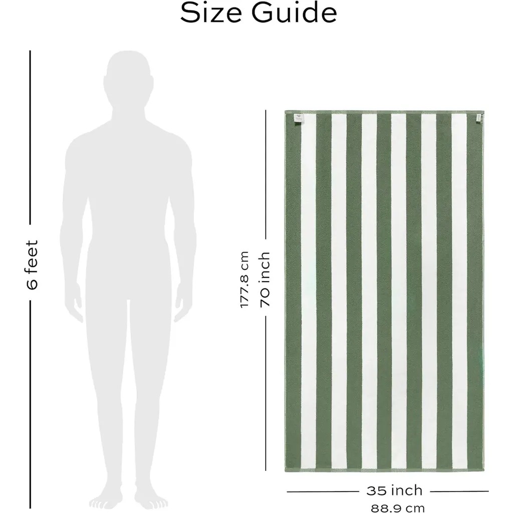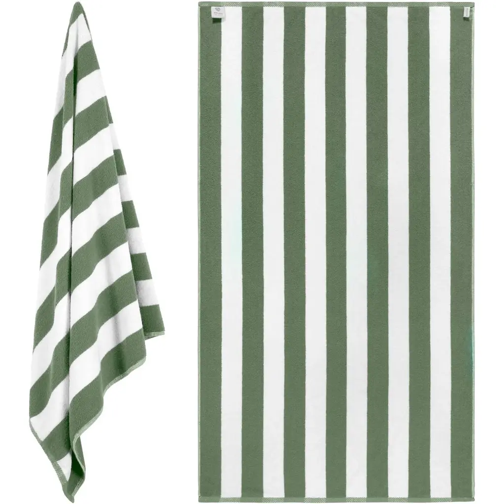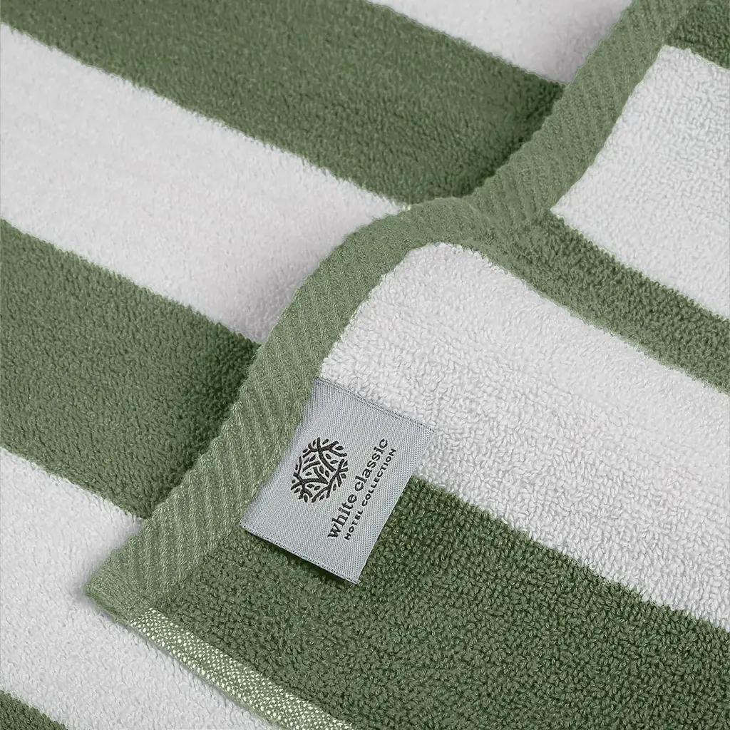 White Classic Luxury Cabana Striped Oversized Beach Towel 35x70" | Set Of 2 - Green