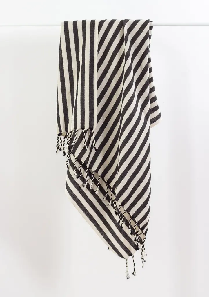 The Zebra Towel is a bold and stylish addition to any bathroom. With its striking black and white striped design, this towel is sure to make a statement. Made from a soft and absorbent cotton-linen blend, this towel is perfect for drying off after a shower or bath. Its multi-use functionality and aesthetic design mean that this towel can also be used as a hair towel, mini scarf, kitchen towel and more. Its durable and long-lasting material is perfect for heavy usage, which means less waste from your household. Add a touch of sophistication to your bathroom with the Zebra Towel.