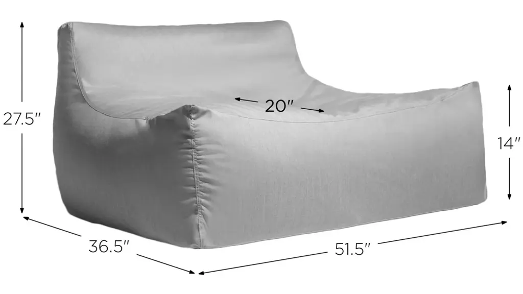 With deluxe sizing, a small-footprint design, and all-weather durability, the Veridiana outdoor bean bag loveseat / modern patio sofa is both a perfect leisure chair for one or an exquisite snuggle sofa for two. Made in the USA, this lightweight outdoor loveseat features a fine bead filling that conforms to your body for the ultimate "easy-living" style and practically begs you to make yourself comfortable for hours and hours, indoors and out. Crafted from premium Sunbrella coated acrylic, our outdoor loveseat is available in solid or two-tone color fabric which is treated to resist dirt and harsh UV light, making it the ideal spot by the pool.