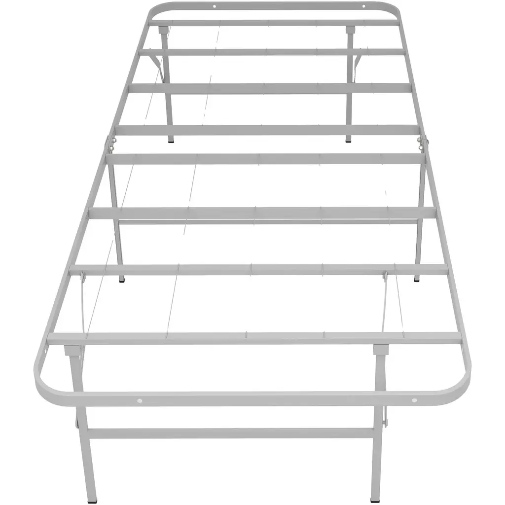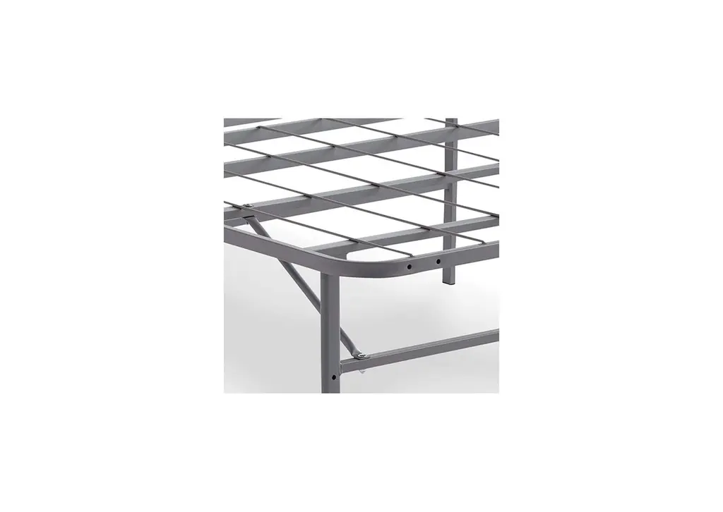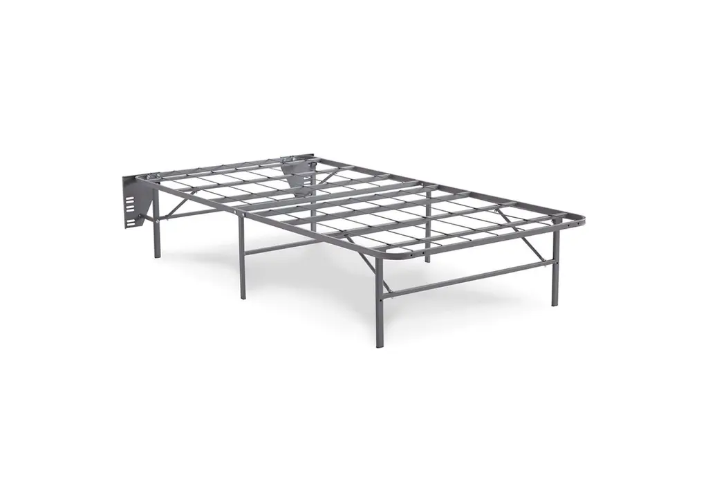 Behold the newest foundation of comfort. The Better than a Box Spring mattress riser is an all-in-one support system that takes the place of an ordinary bed frame and box spring. The metal unit sets up quickly and without using any tools, creates a sleep haven with unwavering support. Included brackets attach the riser to a headboard. Even better: the clearance from frame to floor is incredibly spacious and ideal for under-bed storage. Weight 26.000 lbs. (11.7kgs.)