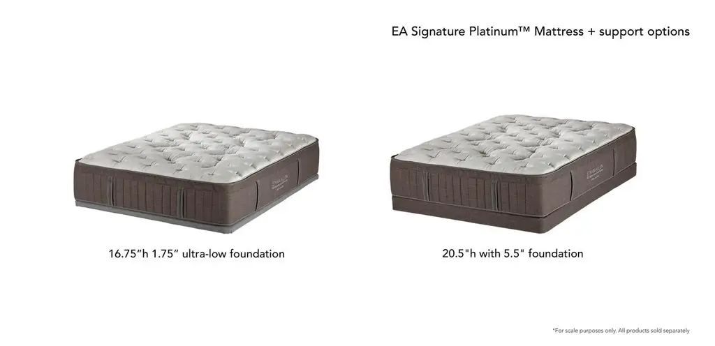 Enhance the luxurious feel of our EA Signature Platinum™ mattress with an EA Signature Platinum™ foundation. It's crafted from responsibly harvested Canadian spruce wood; for every tree removed to construct our foundations, a new tree is planted in its place. Available in 5" height to complement the additional comfort layers of our EA Signature Platinum™ mattresses.