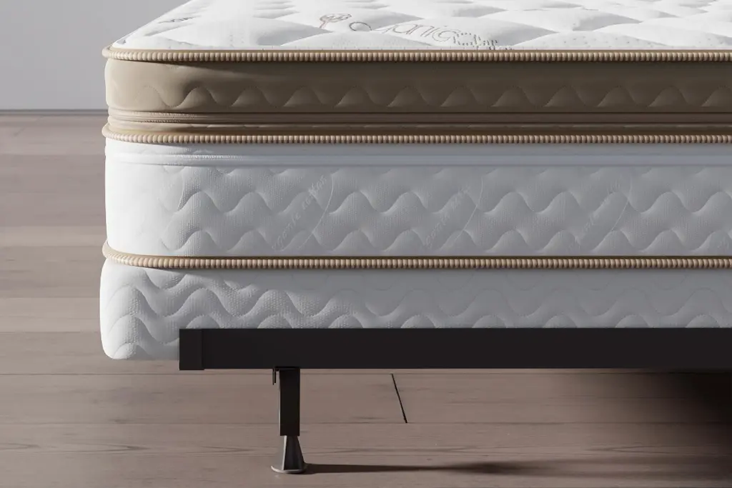 Better than a box spring, our foundation adds optimal support & durability. Complete your ultimate sleep upgrade by pairing your Saatva mattress with our high-quality bed foundation. Our steel metal frame (sold separately) supports your bed foundation and mattress, lifting your bed setup 7.5" off the ground. Mattress cannot sit directly on the metal frame.