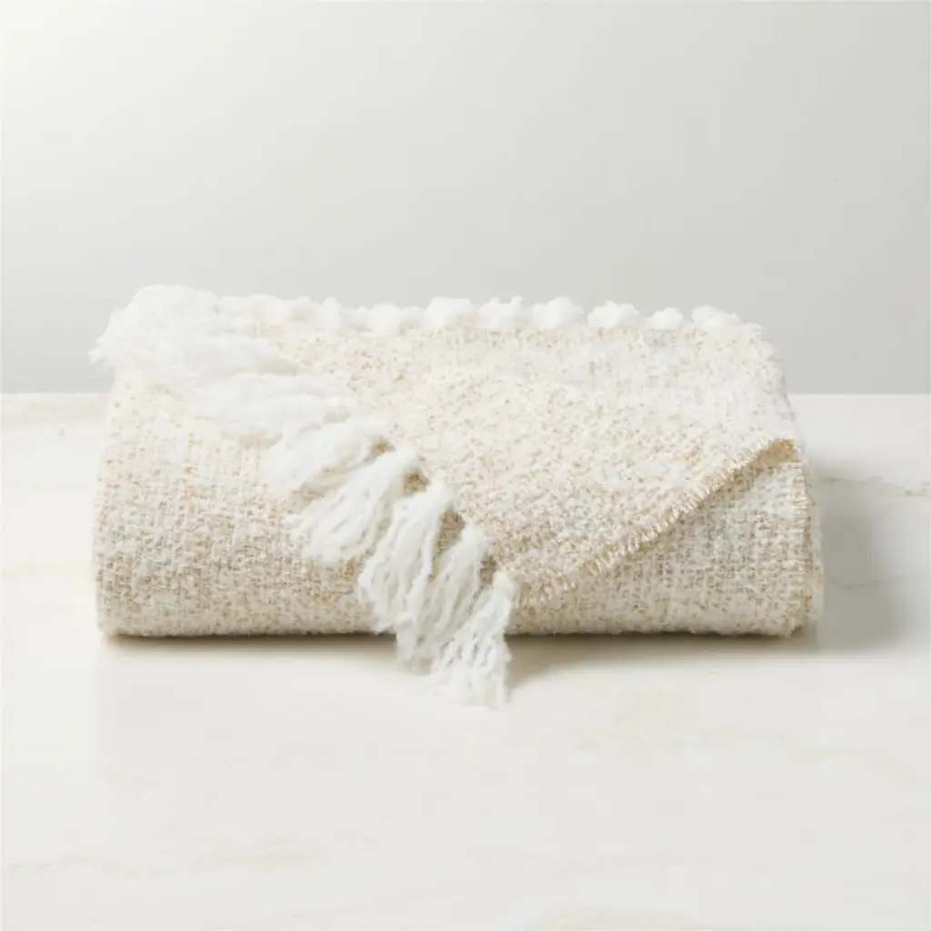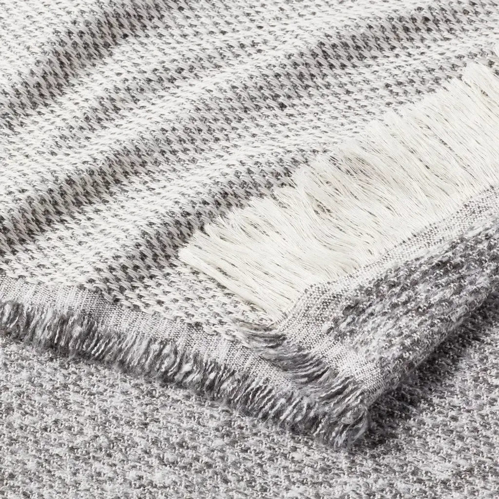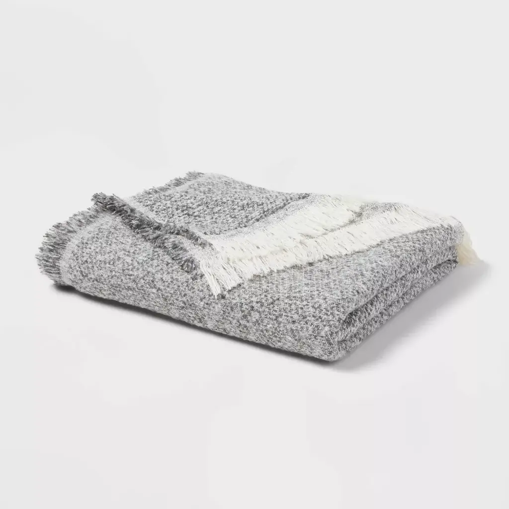 Add warmth to any space with this Marled Boucle Throw Blanket with Fringe from Threshold™. This solid gray throw blanket with a marled effect makes a fashionable and cozy accessory for the fall or chilly season. Made from woven boucle material, this midweight throw blanket is both warm and comfortable to use. The coordinating fringe accents add casual texture and decorative flair. Just toss it on your bed or drape over your couch to offer extra warmth and style. Threshold™: Quality & Design / Casual classics for house and home.