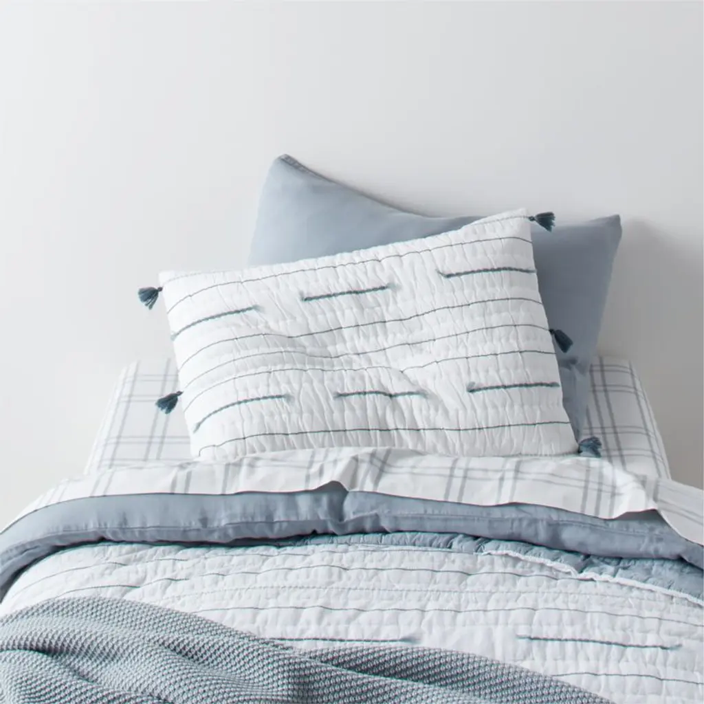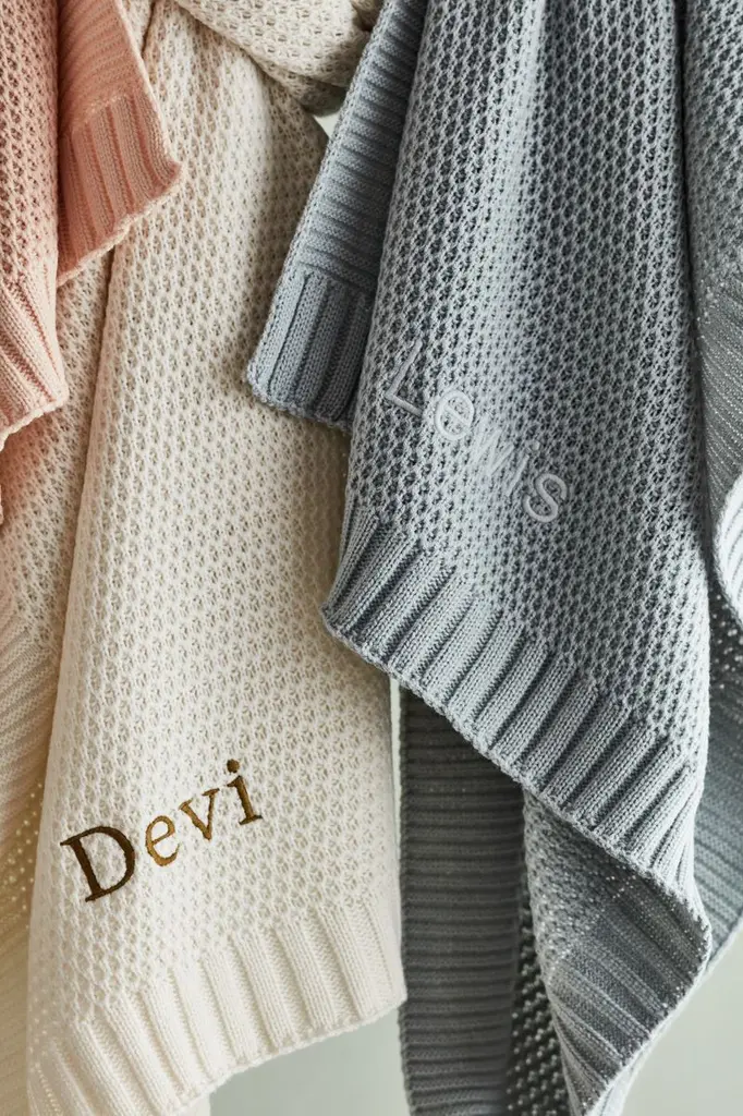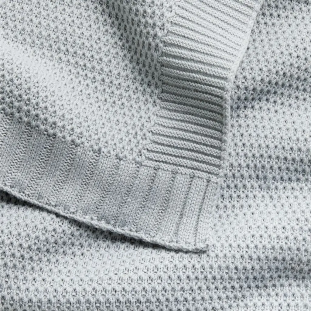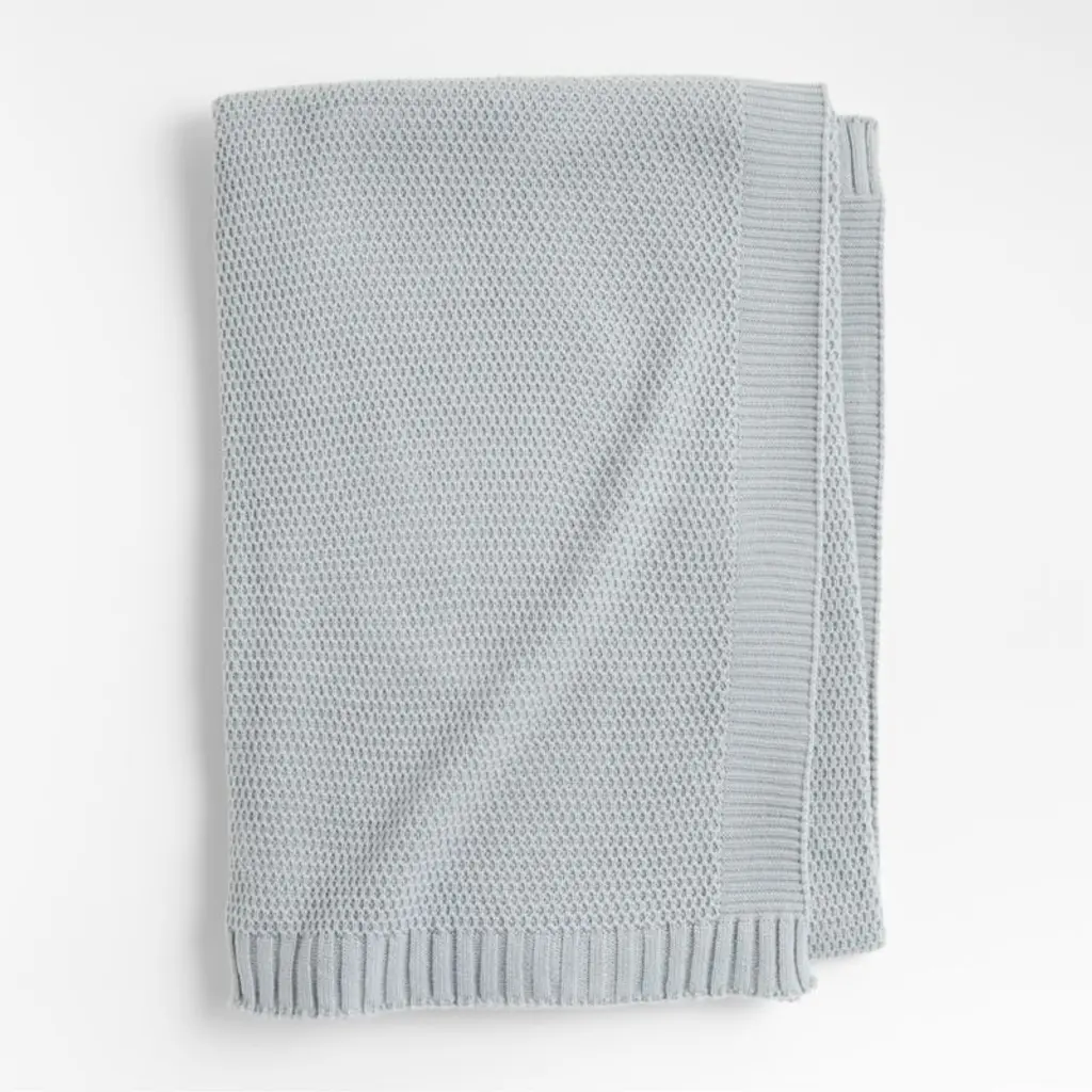 Crafted with a mix of knitting stitches, our bubble knit bed blanket creates the cozy, comfy texture that kids love in cool and classic Mist Blue. The soft, durable acrylic material is not too heavy or too light, making it the perfect extra layer whether lying in bed or lounging on the sofa. Just like the cuffs of a favorite sweater, the blanket's broad border stands up to tugs from little fingers. Plus it's machine washable to help maintain its beauty for years to come.
