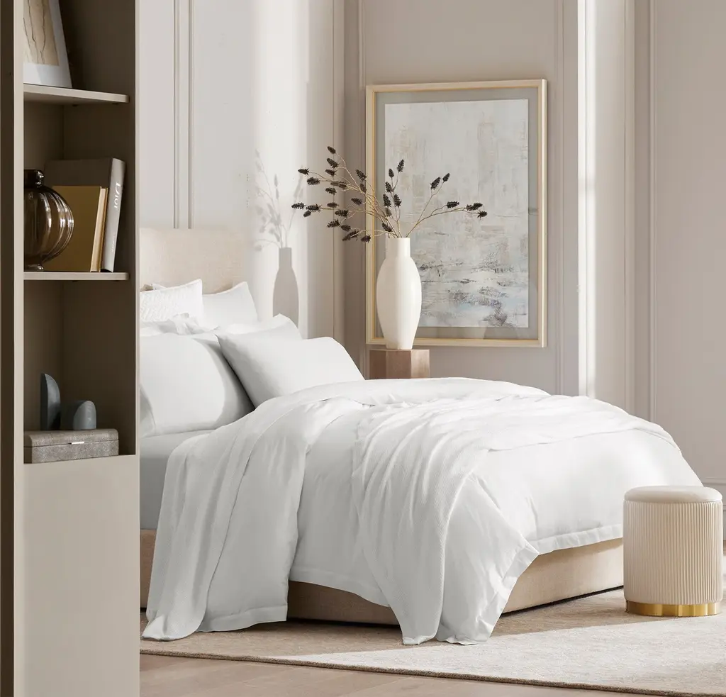 With a casual style and cloud-like touch, this Bed Blanket is so exceptionally soft and inviting, it will quickly become your new favorite bedding essential. Its unique design starts with 4 lightweight layers of ultra-fine organic cotton, all pre-shrunk to bring natural folds with a distinct texture and supple stretch to each piece. Dyed and washed to give the fabric its subtle tonal gradient, this laid-back design offers an incredible softness you’ll surround yourself with night after night.