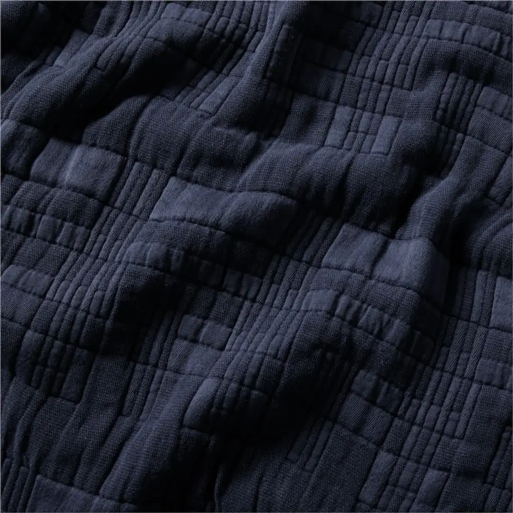 Geo Matelasse Organic Cotton Deep Indigo King Bed Blanket