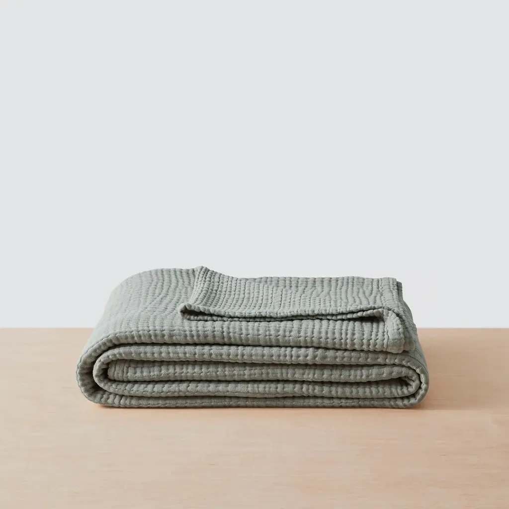 The finishing touch to your bedroom oasis? This extra soft, perfectly textured bed blanket loomed from eight layers of cotton gauze. Relaxed, yet refined, our cotton gauze bed blanket is extra fluffy thanks to its eight layers of breezy cotton. Designed to mix and match with our iconic linen and cotton bedding, this bed blanket adds the perfect finishing touch to your bedroom oasis. Made using 100% cotton from the Aegean region of Turkey, each blanket is made start-to-finish in a fair trade environment. All Oeko-Tex® and Global Organic Textile Standard (GOTS) certified. Also available as a throw.