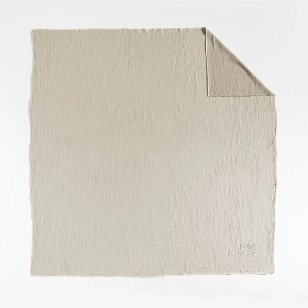 Lightweight and versatile, our reversible throw is made of gauze for a breezy loft and soft, lightly textured feel. Narrow lines in taupe brown and crisp white stripe one side, reversing to a solid heathered grey. Our throw is perfect for draping over a sofa or foot of the bed for easy access when cool breezes chill. Made of organic cotton, the brown-and-white striped blanket coordinates beautifully with our seasonal pillows.