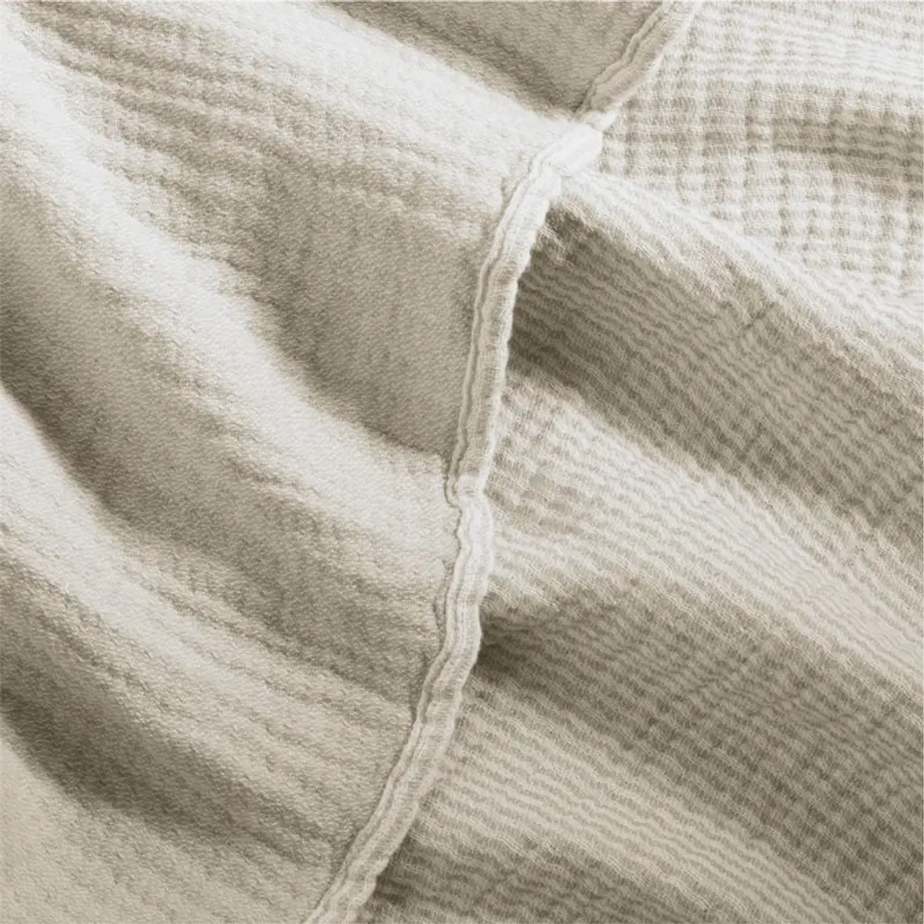 Reversible Stripe Gauze 80"x80" Taupe Brown And Arctic Ivory Bed Blanket