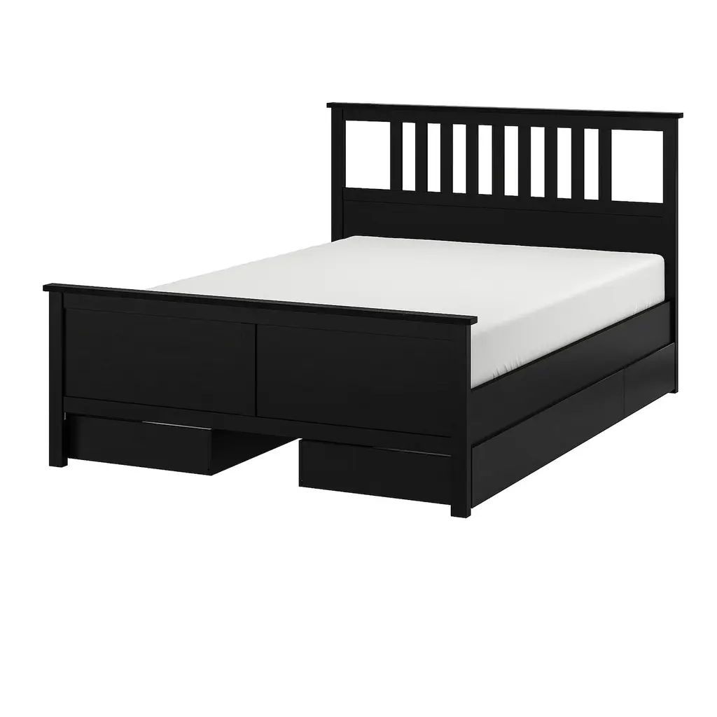 Hemnes Bed Frame With 4 Storage Boxes - Black-Brown/luröy King