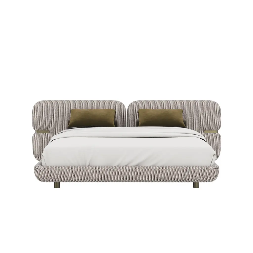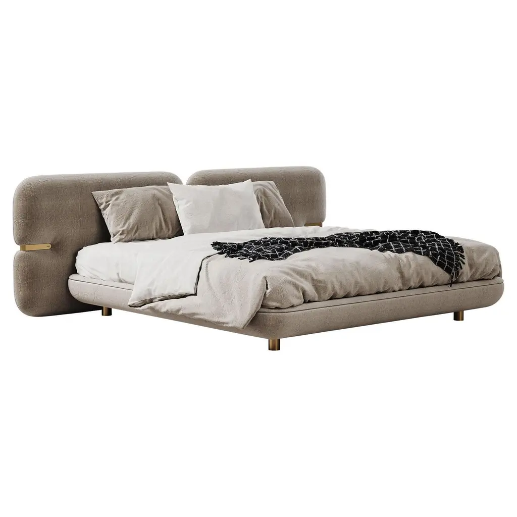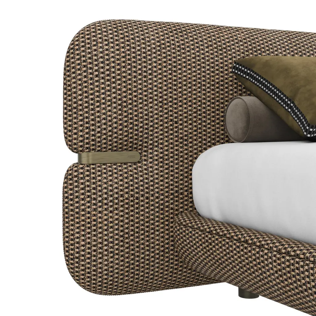 The second largest city within the New York metropolitan area, Newark is one of the oldest cities in the United States. Blending Portuguese Craftsmanship and a deluxe lifestyle and transforming sights into deluxe living protagonists, Porus Studio's designers conceived the Newark Bed.Featuring a modern design and dynamic shape headboard upholstered in jacquard, featuring aged brushed brass details. The Newark Bed offers absolute comfort while providing it with a deluxe aesthetic.