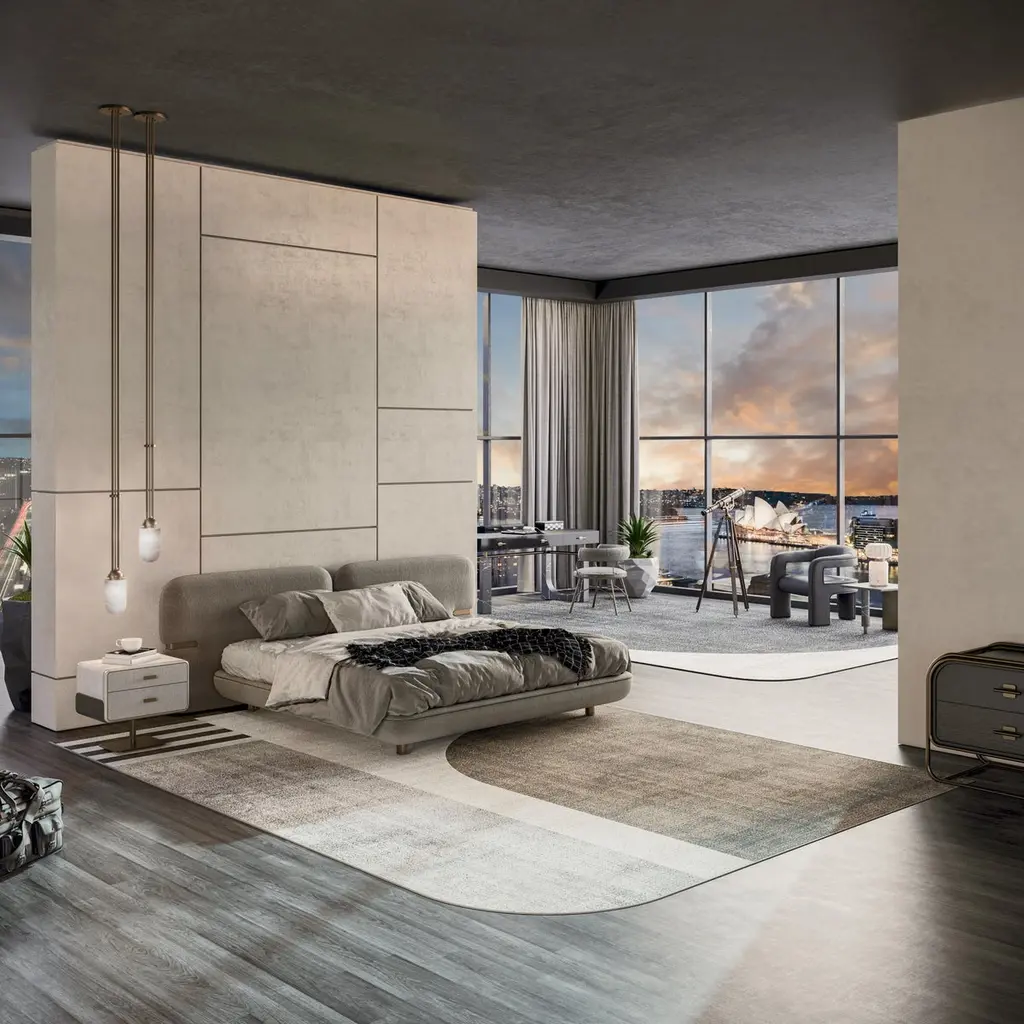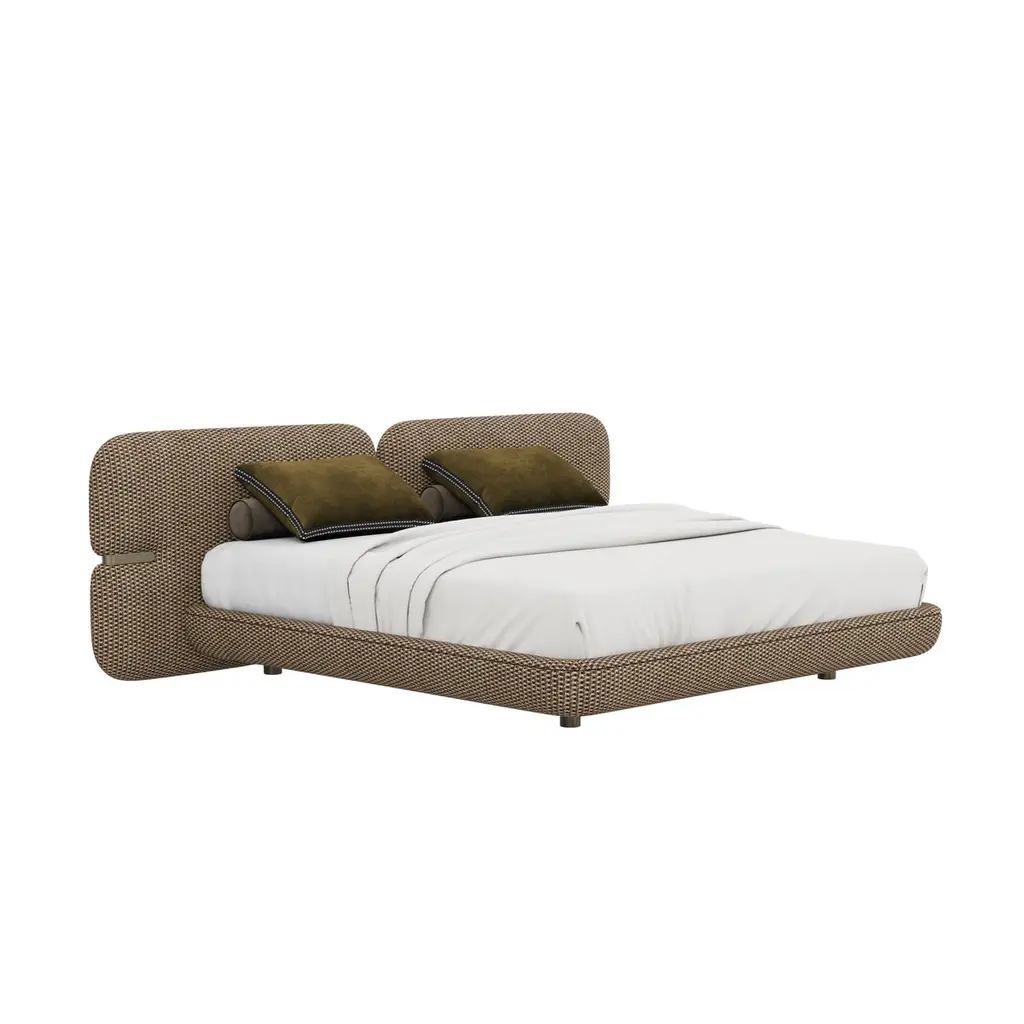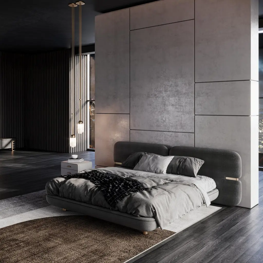The second largest city within the New York metropolitan area, Newark is one of the oldest cities in the United States. Blending Portuguese Craftsmanship and a deluxe lifestyle and transforming sights into deluxe living protagonists, Porus Studio's designers conceived the Newark Bed.Featuring a modern design and dynamic shape headboard upholstered in jacquard, featuring aged brushed brass details. The Newark Bed offers absolute comfort while providing it with a deluxe aesthetic.