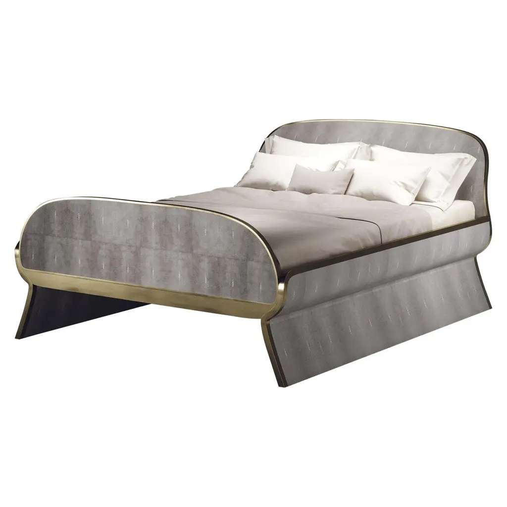 21st Century Orpheus Bed In Hand-Carved Beechwood And Fabric
