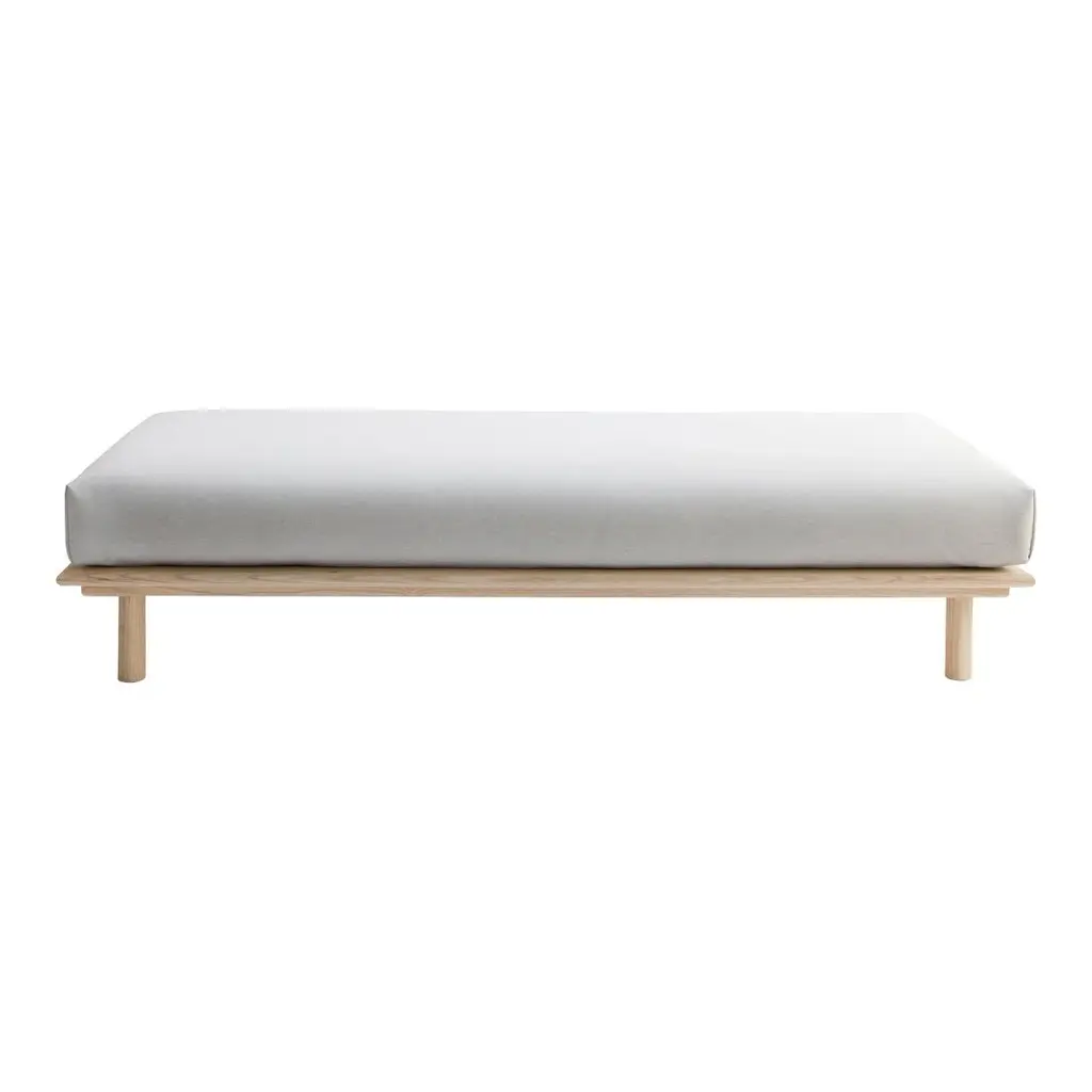 The clean and elegant lines typical of Japanese designs mark this exclusive tatami double bed, where the low base is an unmistakable trait borrowed from the Japanese tradition. Apt to fit in wide, minimalist spaces, it is entirely crafted of solid durmast. The mattress in the picture is not included in the price. Please contact the Concierge for size and wood variants.