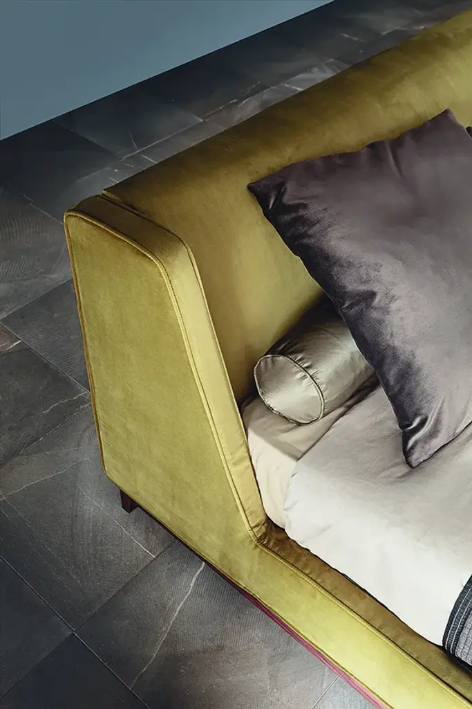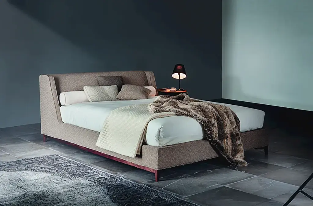 5000 Queen is a large double bed available in different sizes and with completely removable cotton, linen, leather or custom covers. The 5000 Queen bed has a distinctly traditional elegance and it is characterized by a recognizable, unique headrest having the same design as the 2300 Queen bed's armrests and also by other simple yet sophisticated details, such as its feet and the lateral exposed wooden panels.5000 Queen has a wood plastic composite and plywood structure and has been designed with the utmost attention to style, fineness, quality and care for details that are typical of Interior Design Made in Italy.Technical featuresFrame: composite woods and multilayerBase and head padding: polyurethane foam covered with heated bonded polyester fibreFeet and lateral bar: Canaletto walnut wood or in moka stained beech woodCover: fabric or leather cover.Fabric cover completely removable