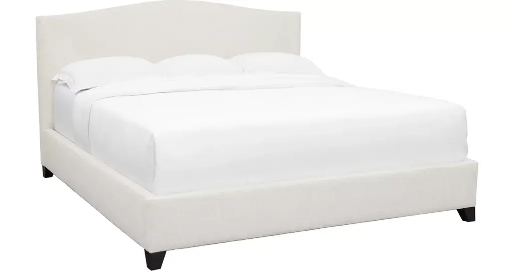 Our Abigail bed exudes classically chic style with its camelback silhouette. Upholstered in a soft cream white fabric, this piece is sure to bring you sweet dreams. Our Havertys sleep experts can also help you select the perfect mattress for your sleep needs. To order a custom style, please visit your local Havertys — you can even bring a printout of your custom creation to share with your sales associate.