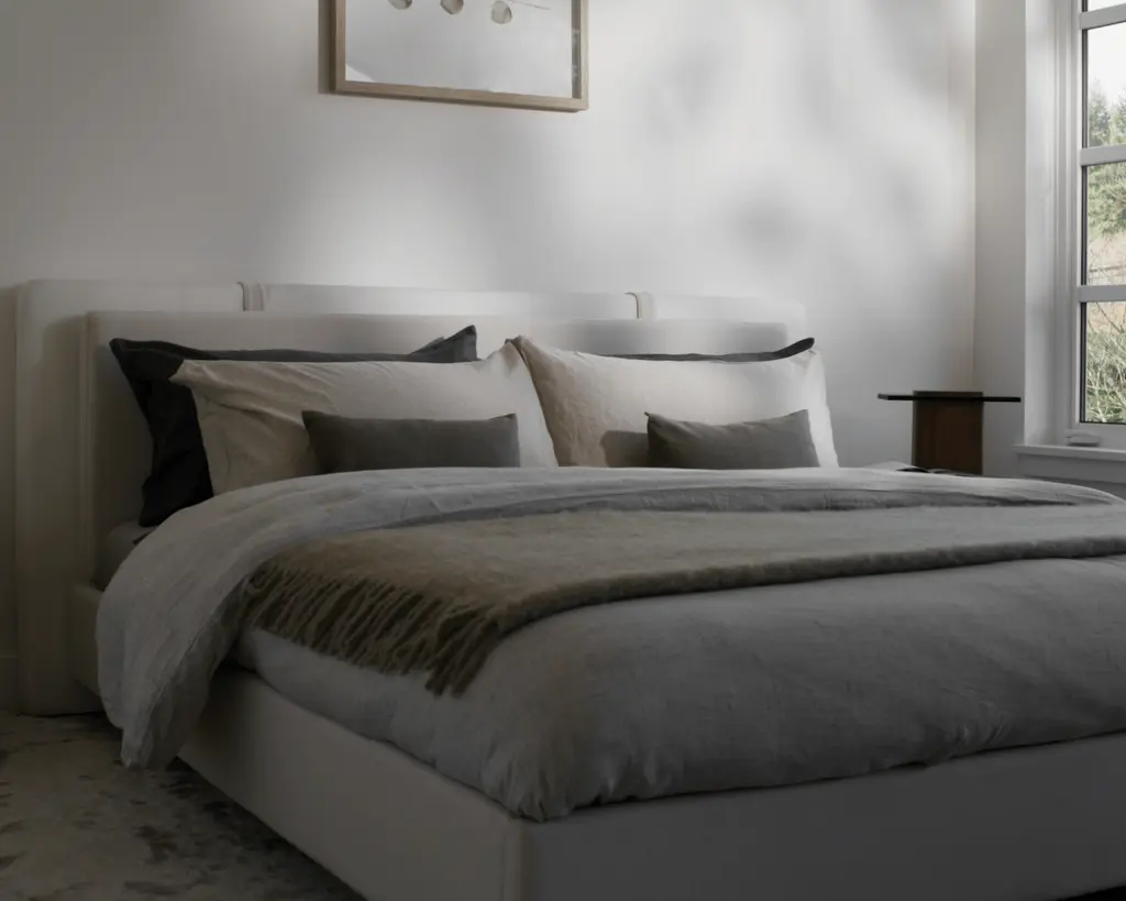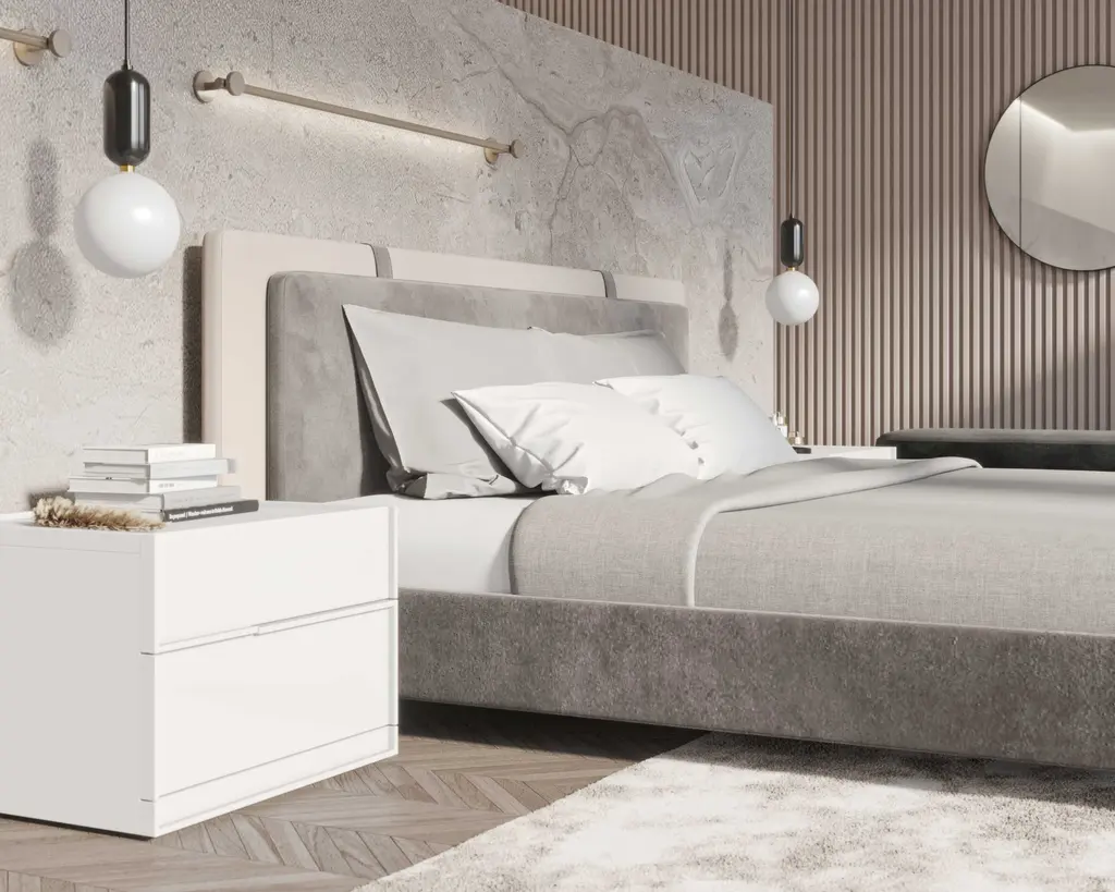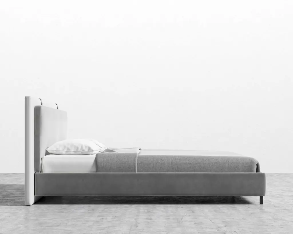 The Abigail Bed pulls you in with its soft simplicity and charming frame. Its richness in both materials and design is showcased in the lavish headboard upholstered in a vegan leather. Upholstered with grandiose details, the Abigail is a perfect centerpiece while establishing tranquility in the room, as the minimalist design delivers sophistication to every corner.