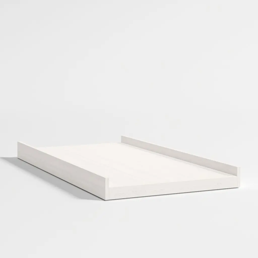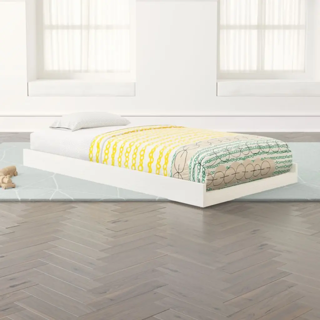 We've created a Rolling Twin Bed with more space saving capabilities than ever before. No, we didn't use magic. We just scaled it down a bit. With a smaller profile than a usual twin bed, this rolling twin bed saves you more floor space than ever before. The hidden casters keep it looking clean and simple, and the white glaze finish allows the woods natural grain to show. Pair it with our exclusive Abridged Loft Bed and create an instant Bunk Bed.