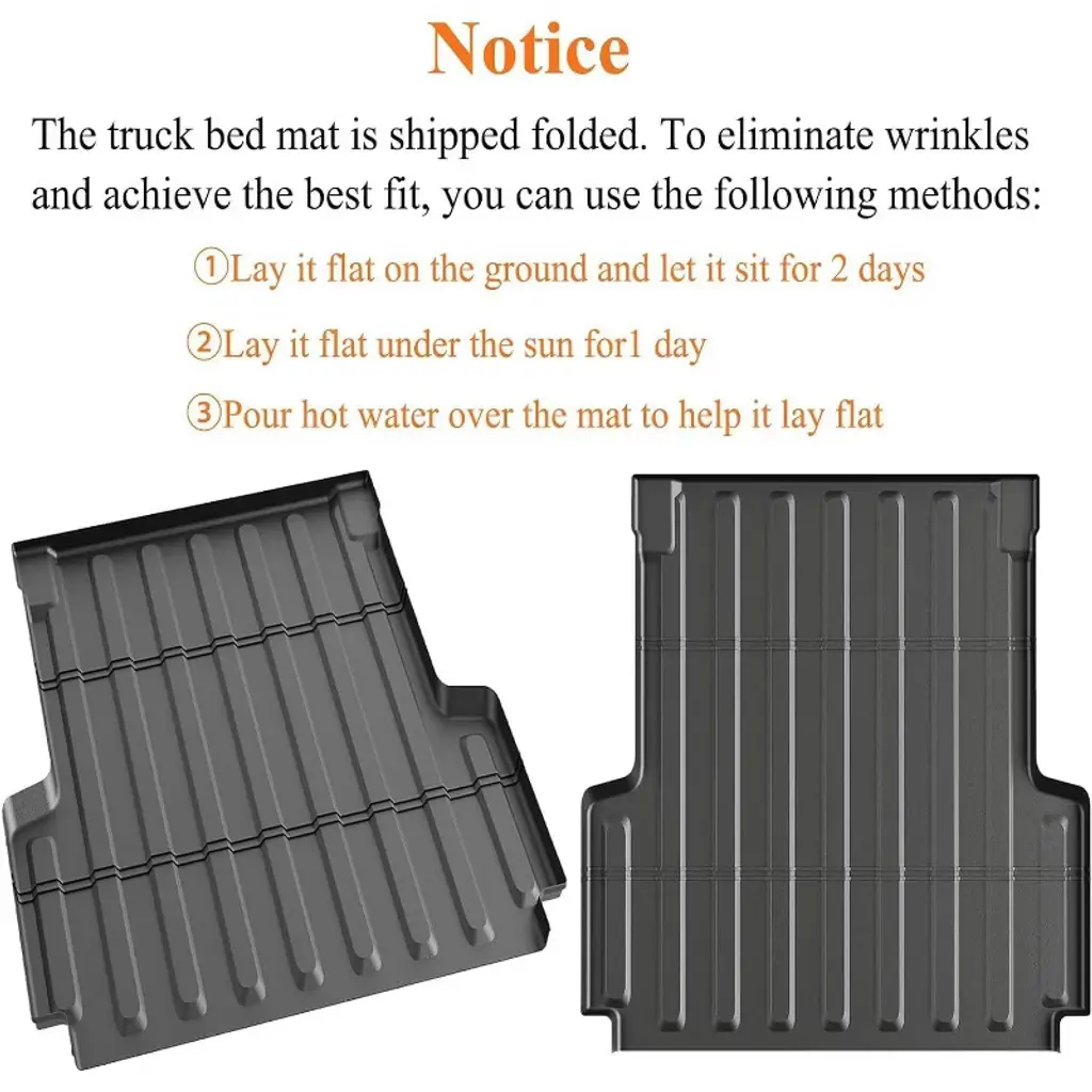 Acekool truck bed mat offers precise protection for 2005–2023 5’ beds, using advanced scanning methods to create a secure and tailored coverage. Its TPE build stands up to heavy gear, outdoor messes, and daily wear, while resisting UV rays and extreme temperatures for ongoing use. Deep grooves and a textured surface provide anti-slip grip for your cargo, and fast drying makes post-adventure cleanups simple. Ready for quick installation and easy removal, each mat is shipped folded for convenience, flattens out smoothly, and supports eco-conscious choices with odor-free, recyclable materials. Sized for 6’ beds, this mat delivers reliable protection and a clean finish for any weather.