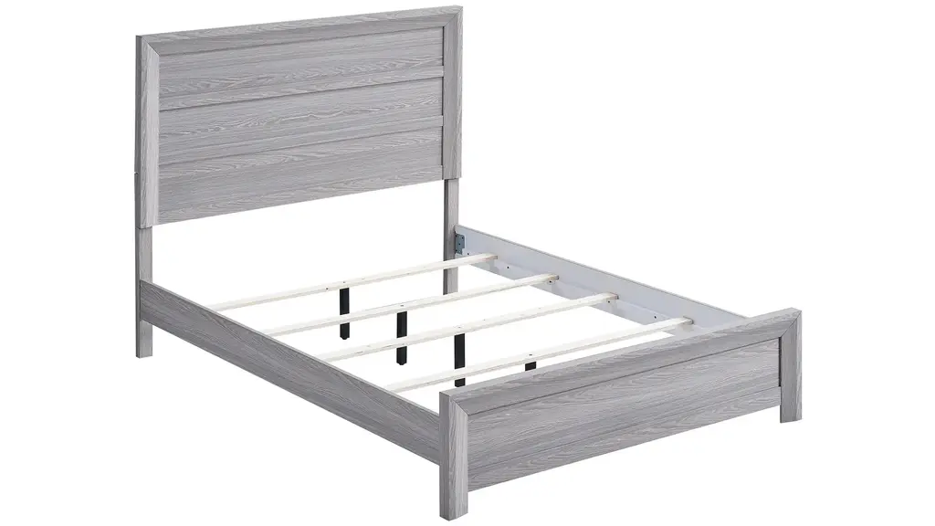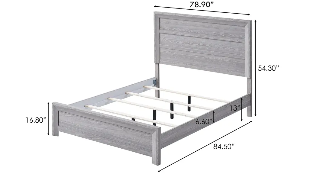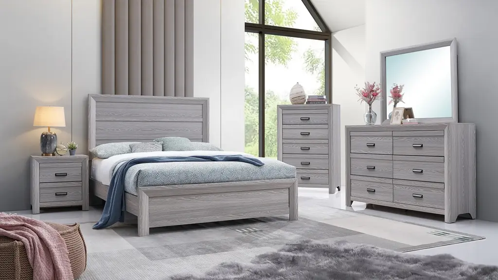 The Adelaide Bed is the embodiment of understated sophistication, featuring a neutral drift wood finish that complements its clean and contemporary design. The robust bed frame anchors the room with a sense of sturdiness and style.