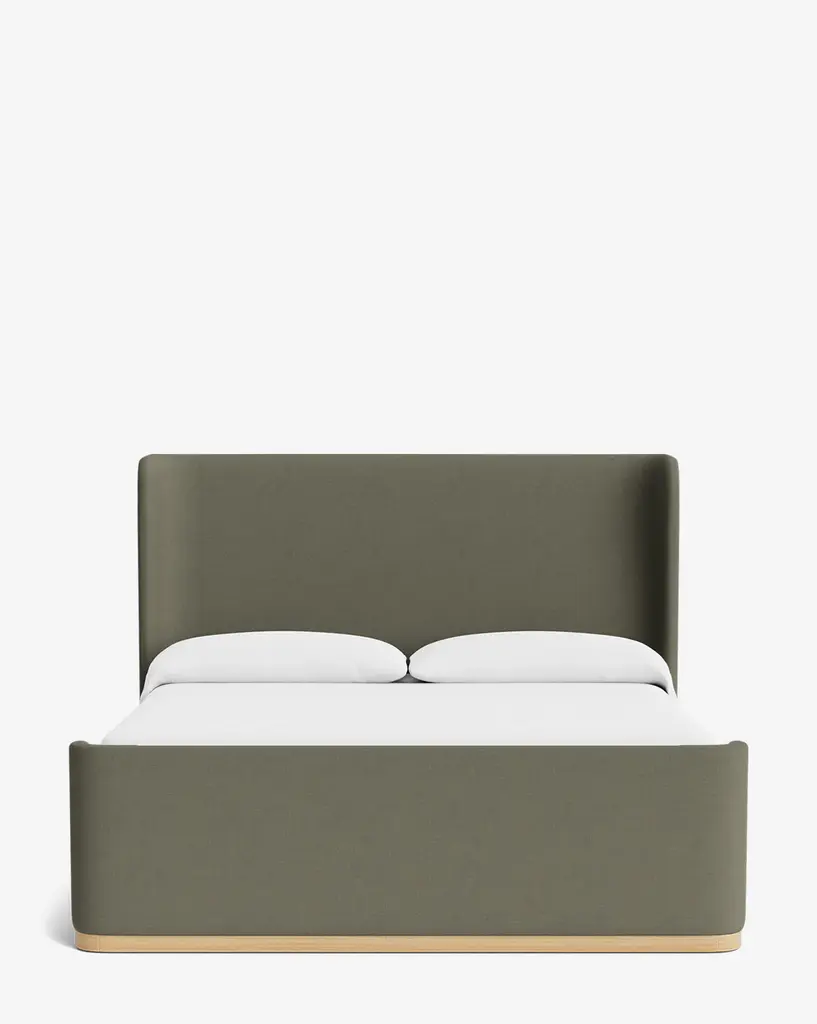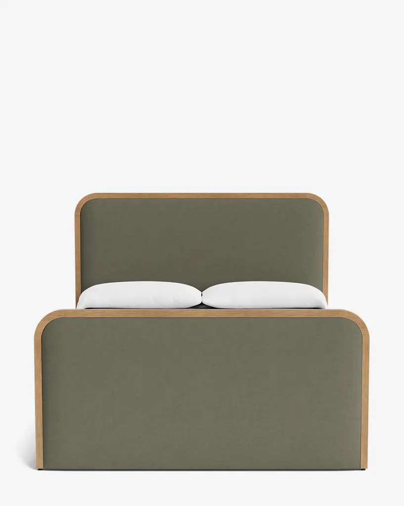 Combining two of our favorite traditional and modern elements, the Ainsworth Bed's smooth curves and streamlined details give your bedroom a comfortable and understated feel. With a wooden detail surrounding the upholstery, and a frame handcrafted from alder wood, this bed is all about the details. Wrapped in your choice of high-quality fabrics from crypton to linen, customize the bed to fit your personal style.