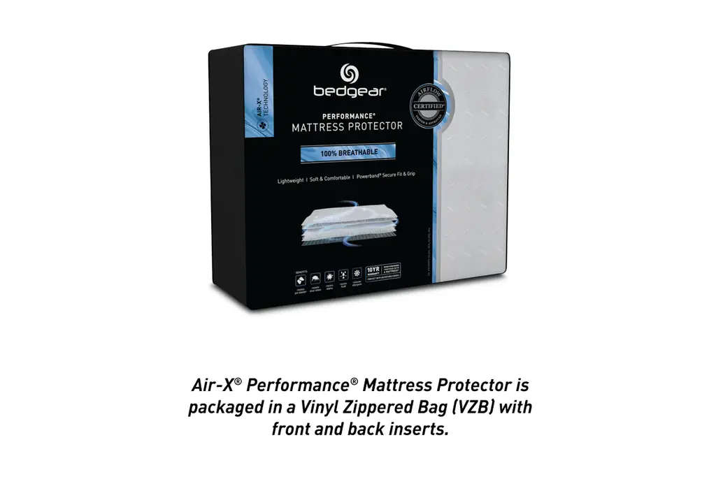 Keep your mattress looking and feeling brand-new while enhancing your sleep with the Air-X Mattress Protector by BEDGEAR®. Featuring Air-X technology, this protector promotes maximum breathability and airflow for temperature regulation. The 3D structured fabric creates a cushion of air for a plush, sponge-like feel. Its waterproof barrier and ultra-lightweight fabrics protect against allergens, stains, and liquids. The fully elasticized Powerband ensures a secure fit without slipping off the mattress.