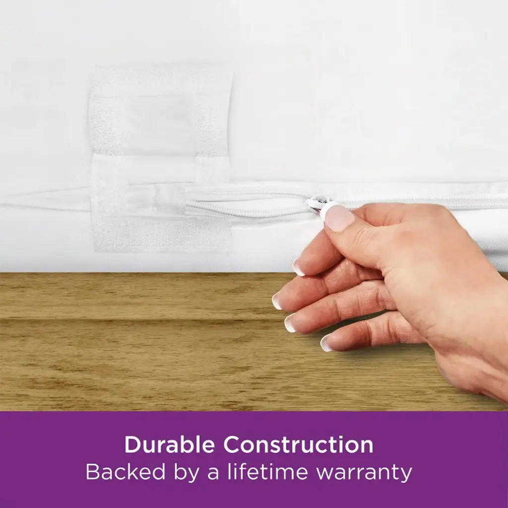 From the #1 best-selling allergy bedding brand, AllerEase Ultimate delivers the clean, healthy night's sleep that we all deserve. Featuring premium materials and an expertly designed construction, Ultimate prevents 99.9% of unhealthy household allergens -- like dust mites, pollen, and pet dander -- from collecting in your mattress. With a soft waterproof layer to protect from spills and stains and antimicrobial product protection to inhibit the growth of odor-causing bacteria, Ultimate also includes specialized seams and zippers making it impenetrable to bed bugs. Together with a temperature-balancing finish to keep you comfortable, a luxurious cotton top, machine washability, and a lifetime warranty, Ultimate offers unmatched comfort, quality, convenience, and value for you and your family.