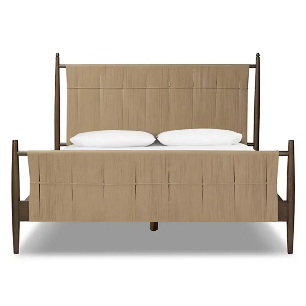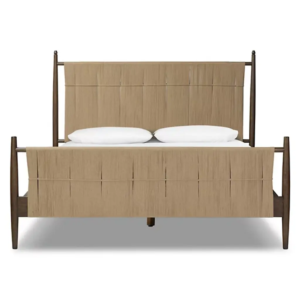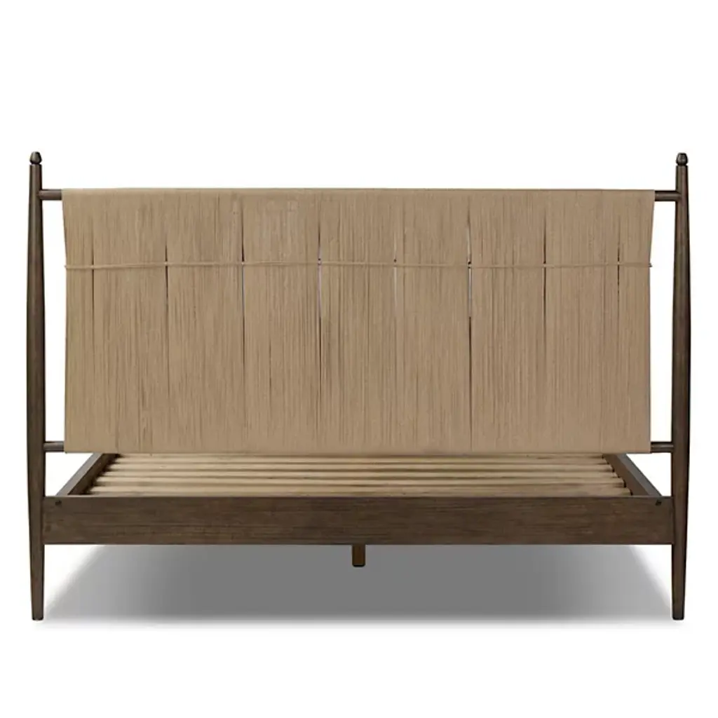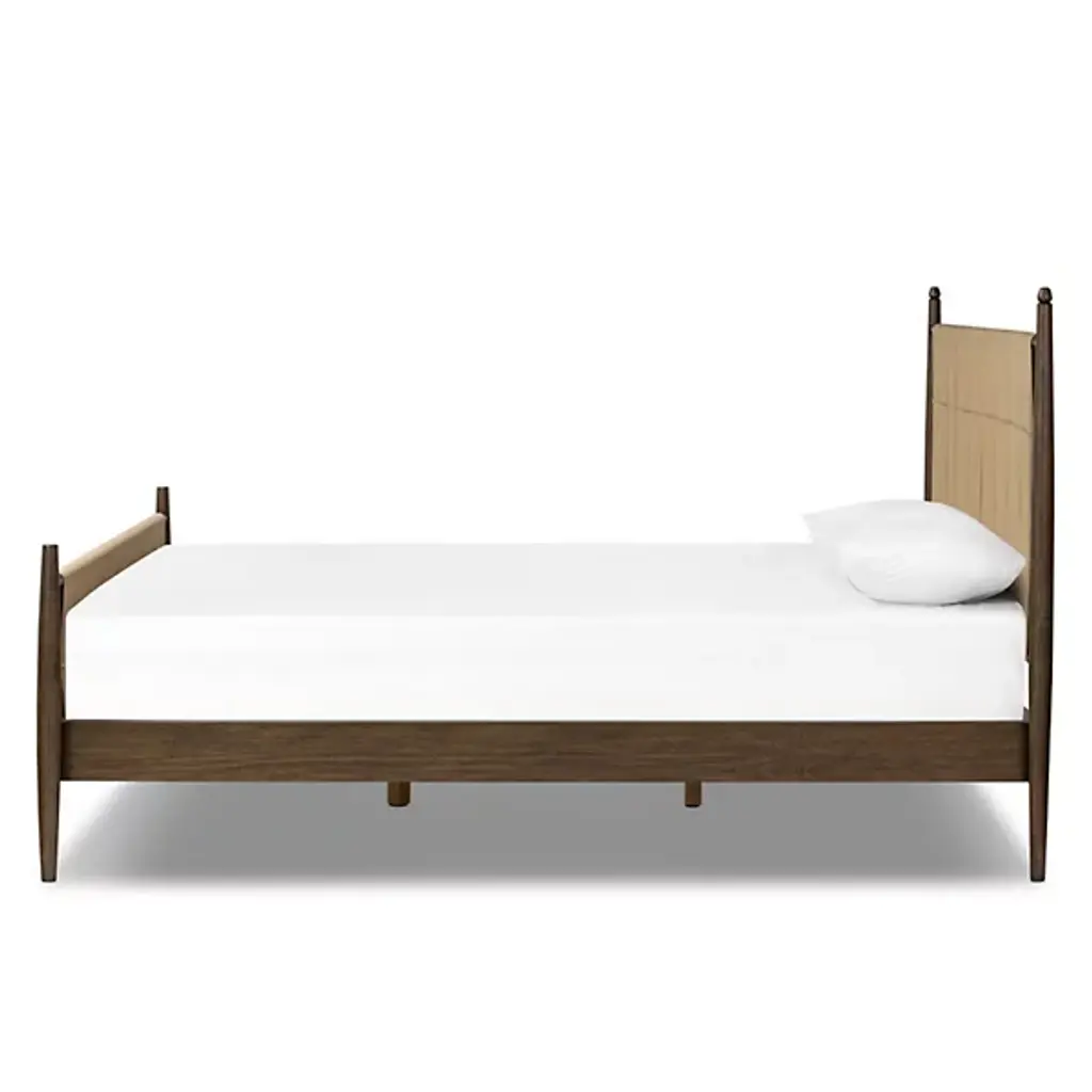 Get some rest with the Amber Lewis x Four Hands Richard Bed from Four Hands. This bed epitomizes fine craftsmanship, creating a welcoming environment. Enjoy your downtime with this mid-century modern piece with hints of contemporary style. Richard is composed of rubberwood for durability. It features thin, random material and boasts fabric that meticulously blends 95% polyester and 5% acrylic. Its sturdy frame is made from solid parawood. Your bed’s linear formation and spindle legs give it an uncluttered appearance. Paper cord wrapping at the headboard and footboard adds intricacy.