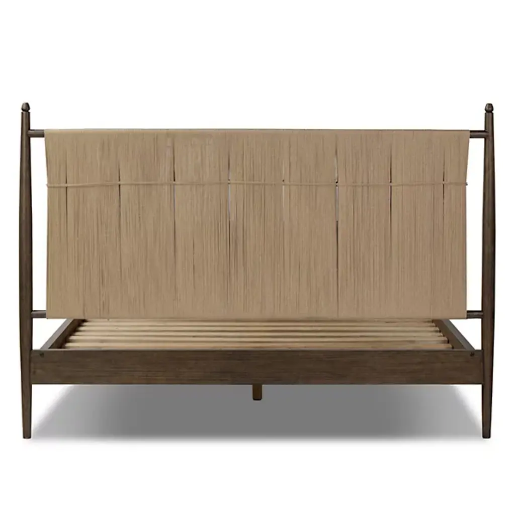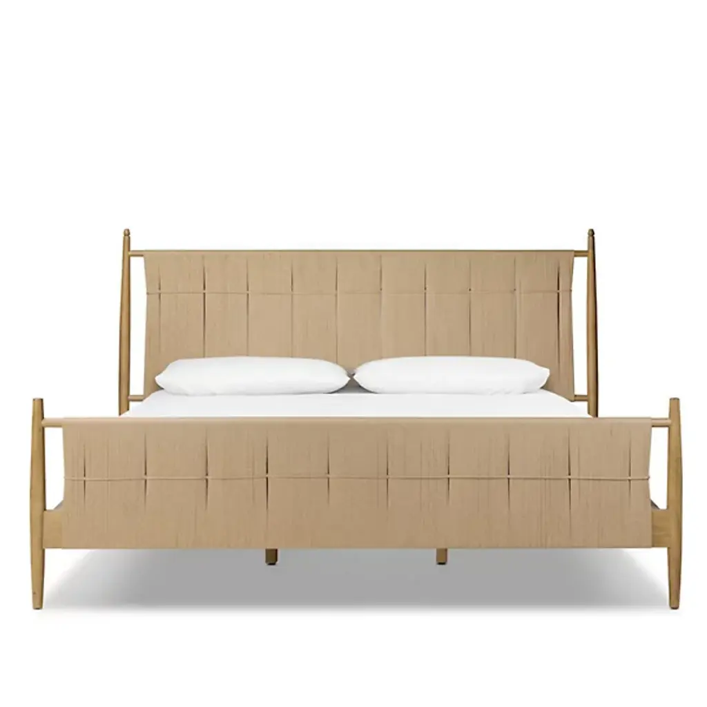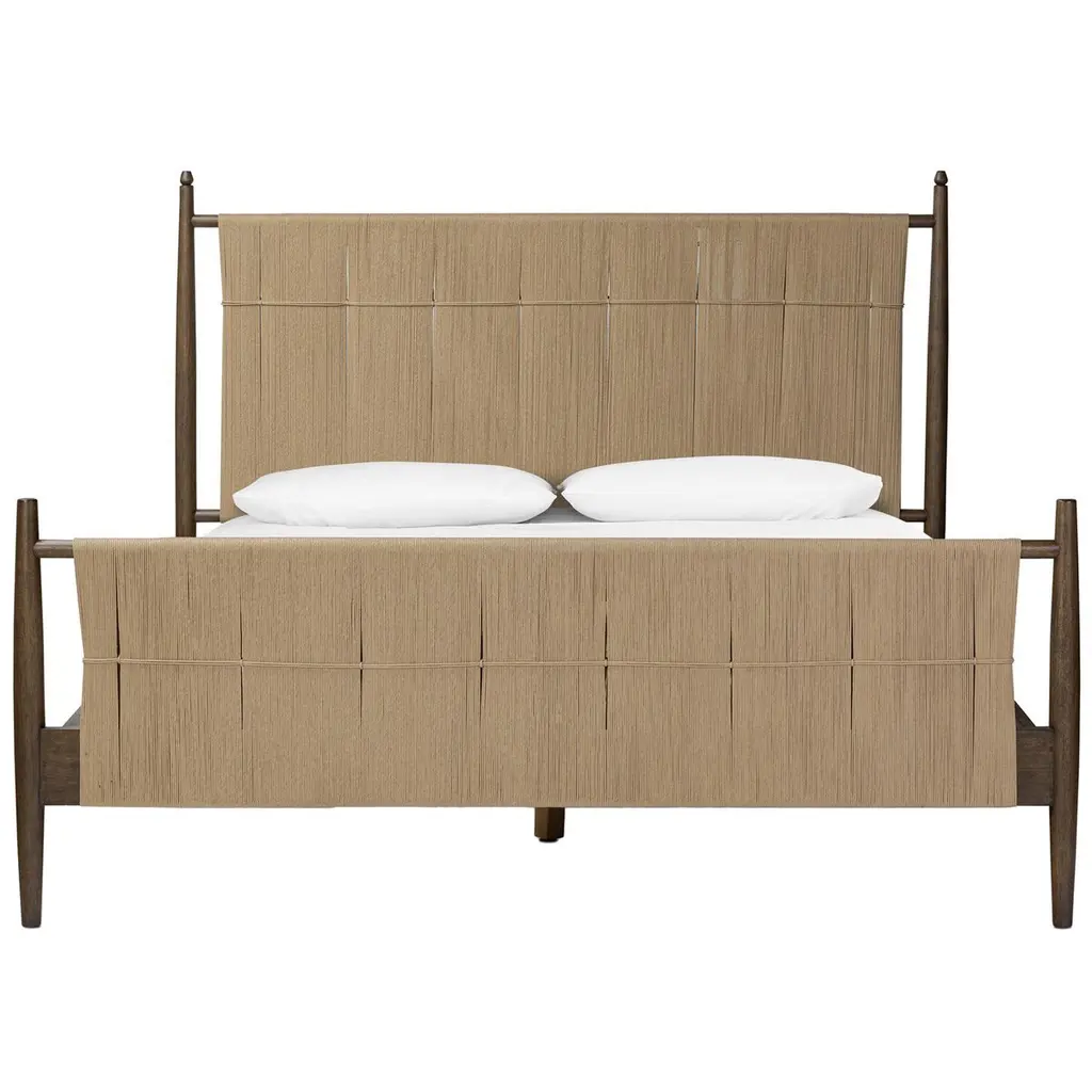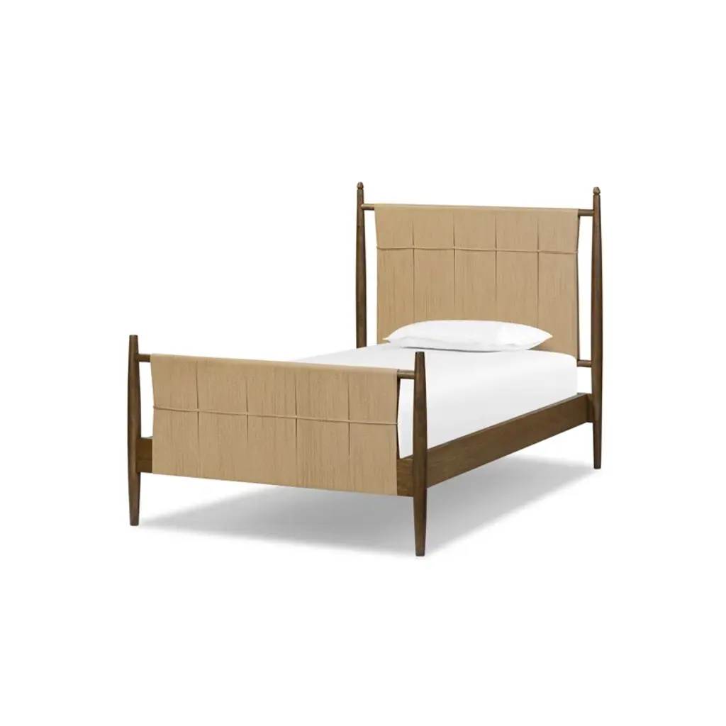 Get some rest with the Amber Lewis x Four Hands Richard Bed from Four Hands. This bed epitomizes fine craftsmanship, creating a welcoming environment. Enjoy your downtime with this mid-century modern piece with hints of contemporary style. Richard is composed of rubberwood for durability. It features thin, random material and boasts fabric that meticulously blends 95% polyester and 5% acrylic. Its sturdy frame is made from solid parawood. Your bed’s linear formation and spindle legs give it an uncluttered appearance. Paper cord wrapping at the headboard and footboard adds intricacy.