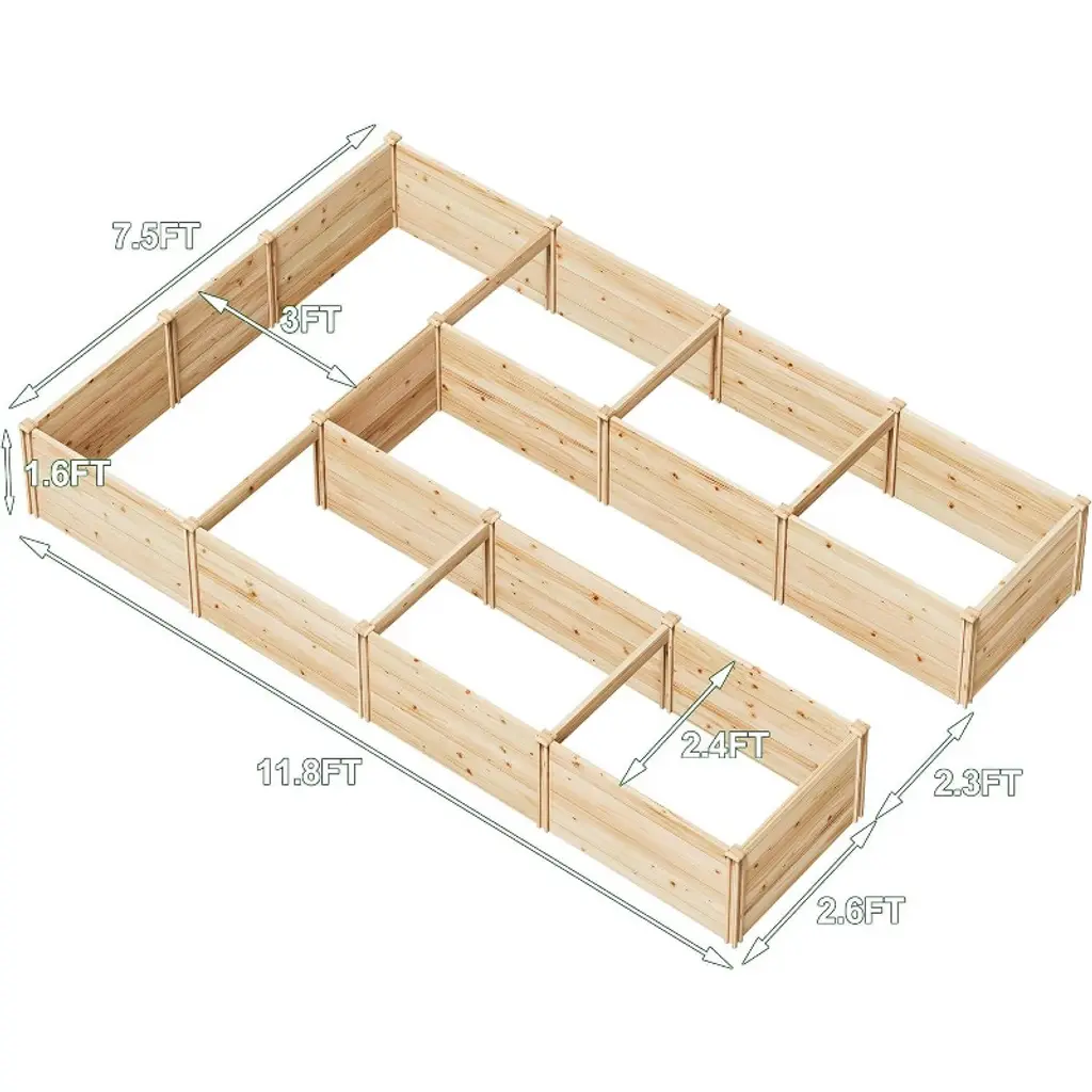 Amerlife 7.5x12x1.6 Ft U-shaped Raised Garden Bed, 19.6" Deep Box, Free Combination Layout