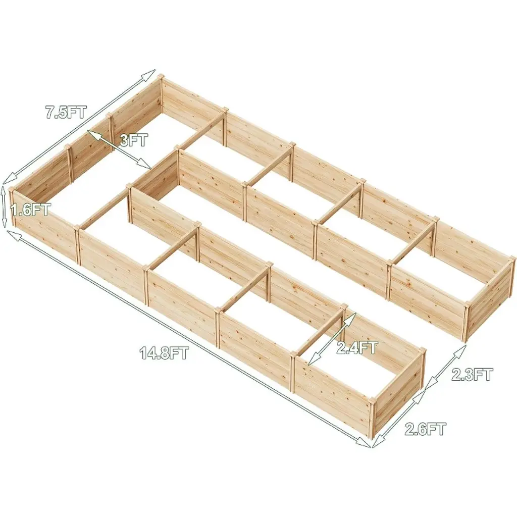 Amerlife 7.5x15x1.6 Ft U-shaped Raised Garden Bed, 19.6" Deep Box, Free Combination Layout