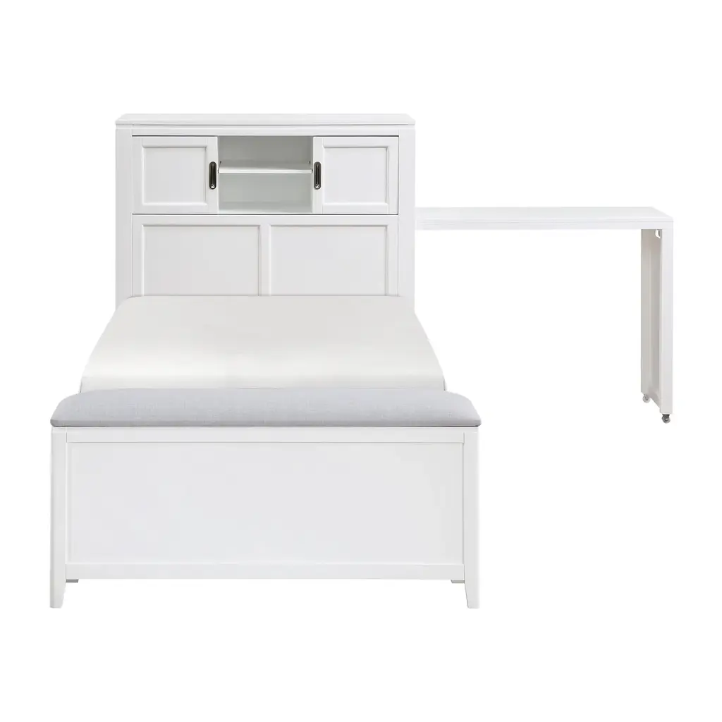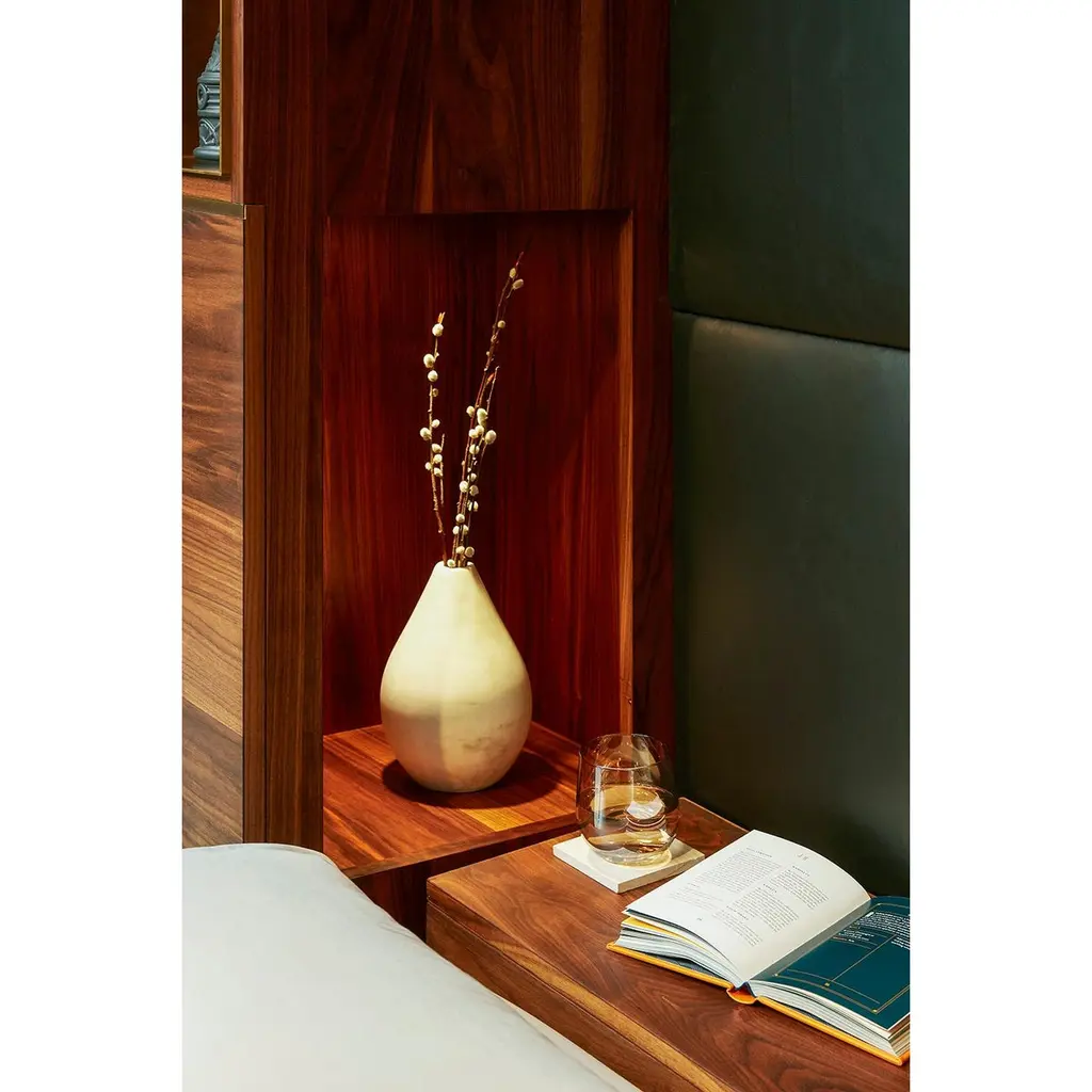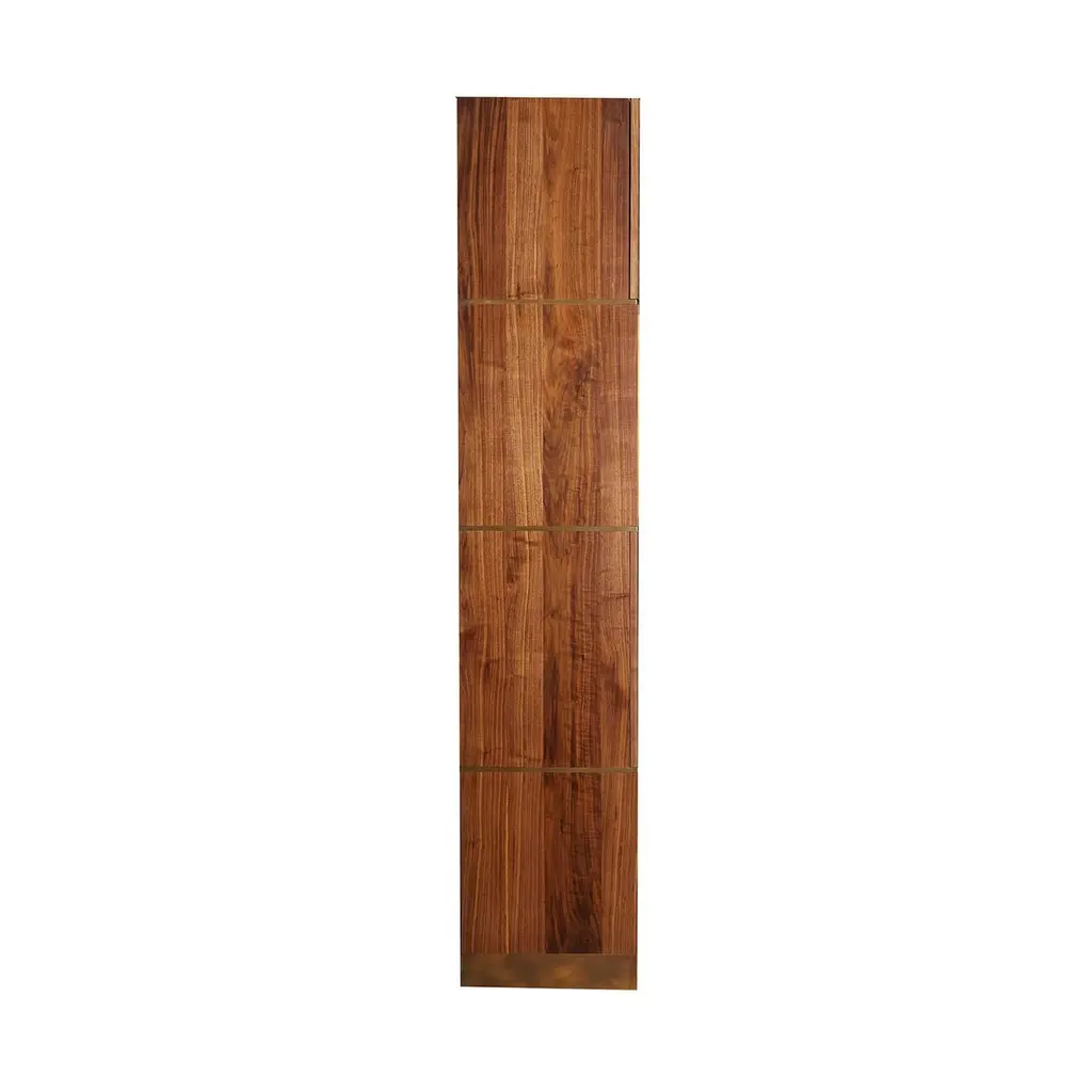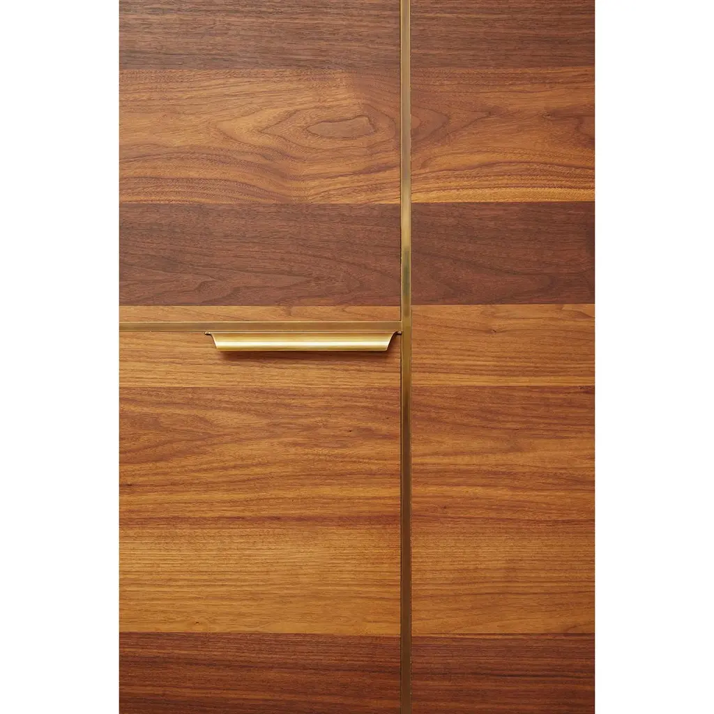 Amuneal’s Murphy Bed in Silvered Walnut and Oxidized Bronze is designed to feel like a built-in piece of millwork, concealing a queen-sized mattress behind panels of silvered walnut with oxidized bronze inlays. With the bed closed, the walnut and brass panels work with brass clad cubbies and integral lighting to create special illuminated display niches for your favorite items. A series of brass and walnut clad drawers and cubbies provide additional visual interest and storage space that can be used for bedding or to help make your guests feel more at home. When the bed is open a full-sized, hand-lacquered headboard and walnut clad nightstand cubbies reveal a welcoming space for your guests. Amuneal’s Murphy beds are produced in our Philadelphia-based furniture studio and are available in a range of finishes and sizes to accommodate different spaces and different mattress sizes.