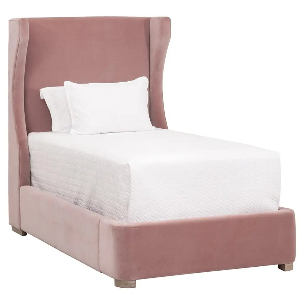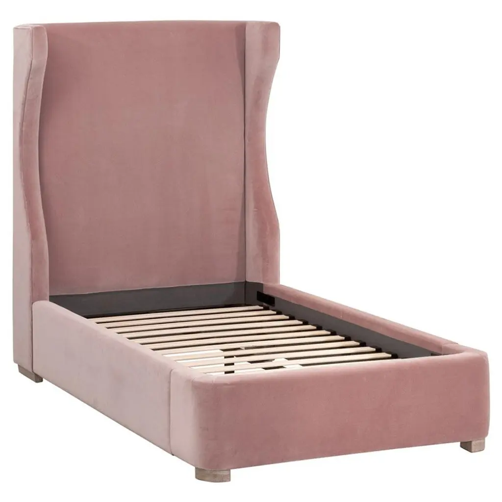 Anastasia Modern Classic Pink Velvet Upholstered Oak Wood Wingback Bed - Twin