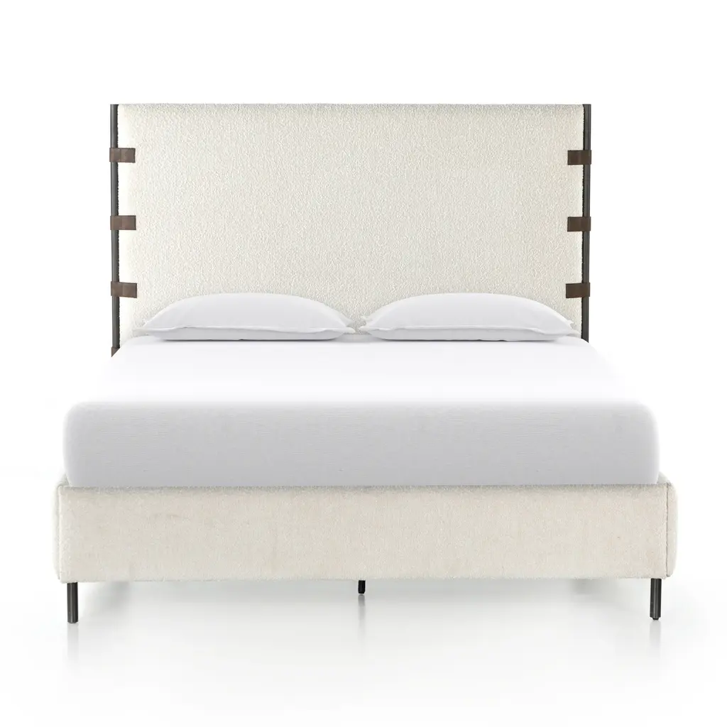 The Anderson Bed from Four Hands offers a chic way to bring texture into your bedroom. Sophisticated cream-colored boucle upholstery is layered with contrast leather sling straps adding a luxurious material-driven touch. Simple add your favorite mattress and sumptuous bedding for a bedroom oasis you can't get enough of. Highlights
