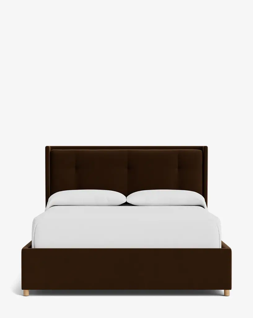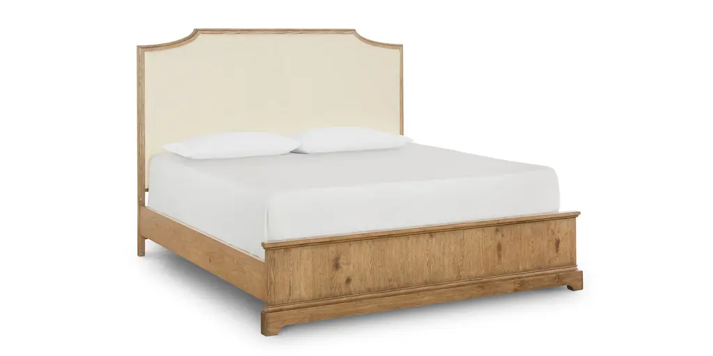 Understated elegance; that's our Andover low-profile upholstered bed. Clean, simple lines let its gorgeous components take center stage: a dramatic Indonesian mahogany bed frame and a stunning upholstered headboard. It's a touch of old Hollywood, a hint of midcentury, a whole lot of transitional glamour—and with hundreds of fabric options available (as with all of our upholstered beds), it's easy to make it yours.