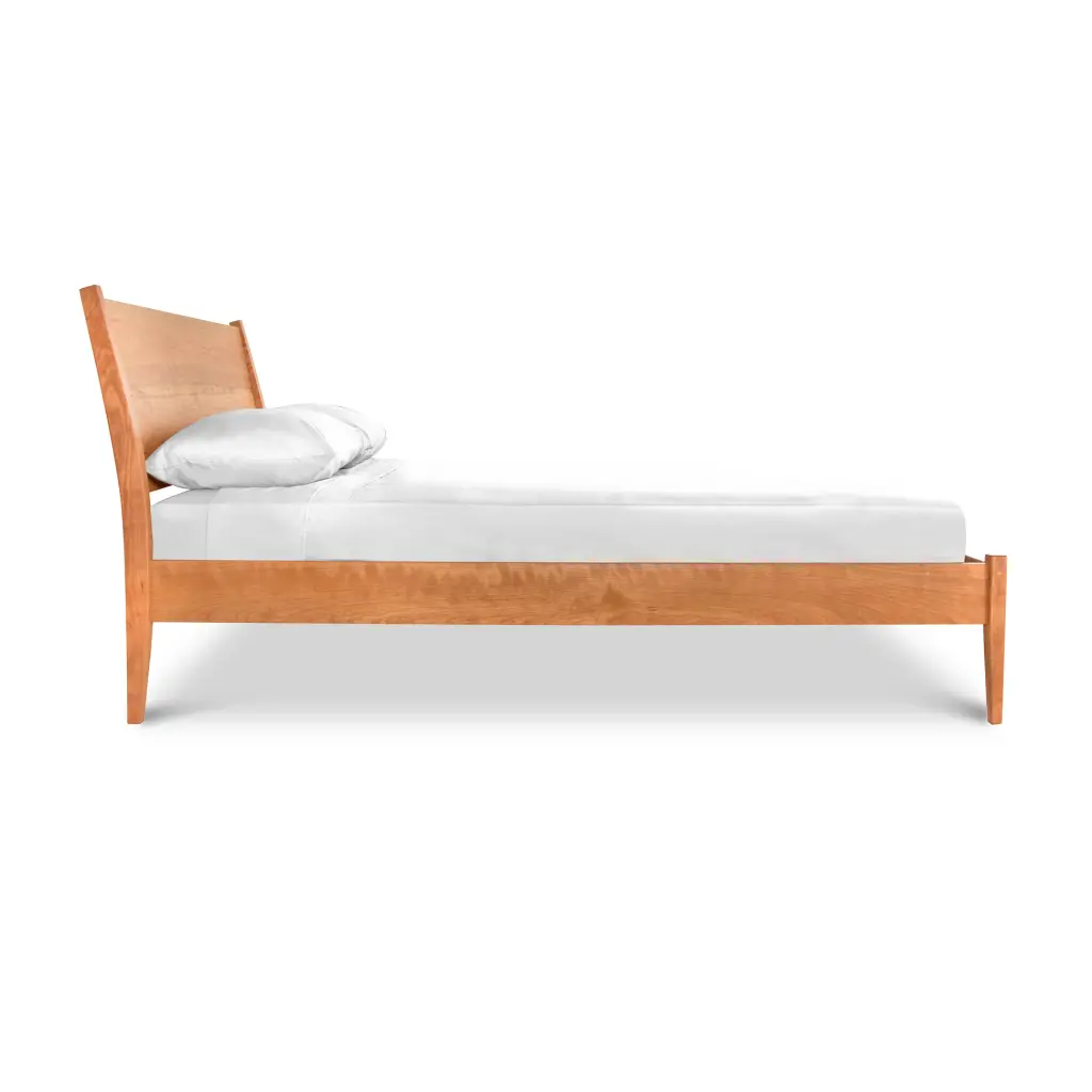 This simple, high-end, solid wood Andover Modern Incline Bed features an inclined headboard for supreme comfort. The subtle angle (10%) of this headboard makes reading or watching TV in bed comfier and ergonomically. Expert craftsmanship means this mid-century modern MCM bed is built to last for generations. Designed as an ultra-comfortable platform bed so there is no need for a box spring.Base price represents twin size platform bed in natural cherryShown in queen size platform bed in natural cherryMatching furniture available in our Andover Modern Furniture CollectionPlease note that the product images shown for this bed are represented with a standard 10" thick mattress.