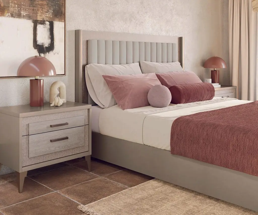 The Italian-made Antonella Queen Bed balances a rustic, Tuscan-inspired aesthetic with a modern high-gloss beige finish. A padded headboard and contemporary profile complete the look, creating an elegant blend of old-world charm and modern refinement. Pair it with other Antonella pieces to design a custom vibe for your space.