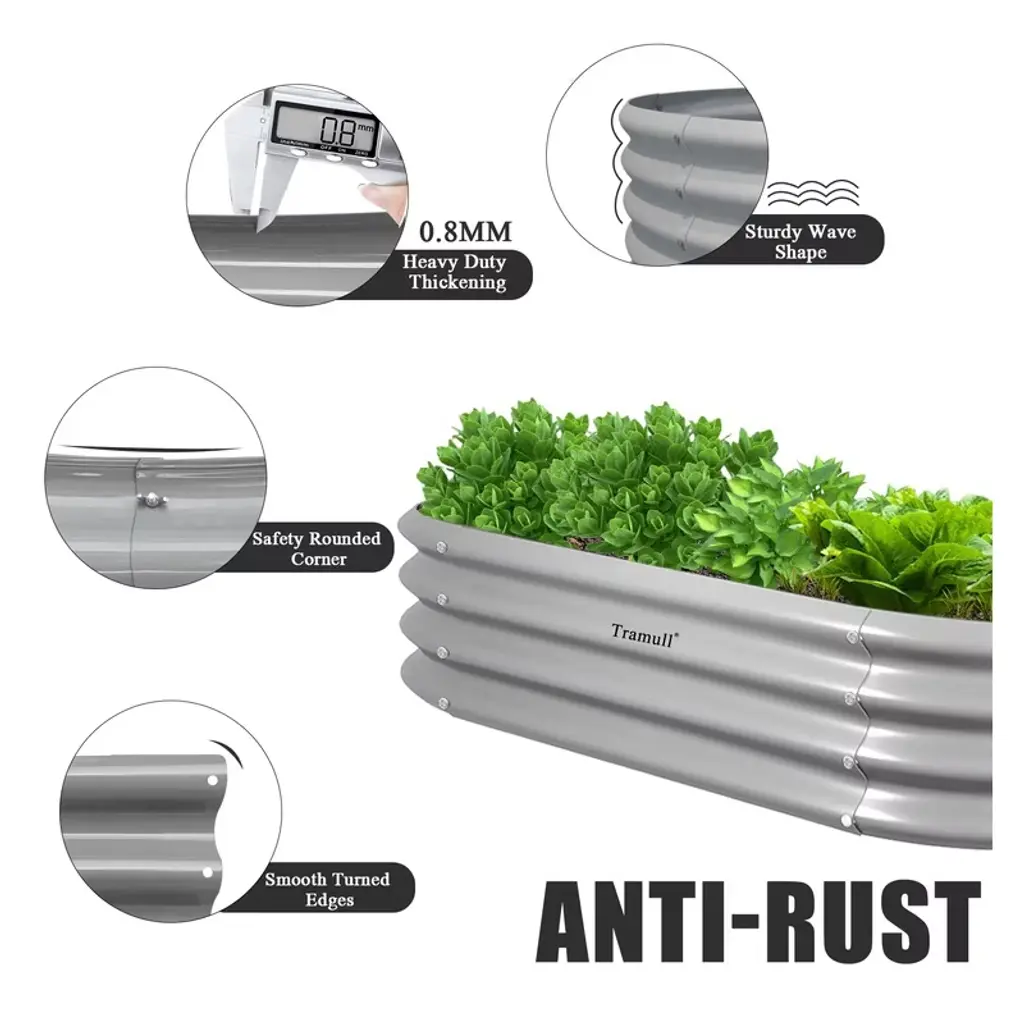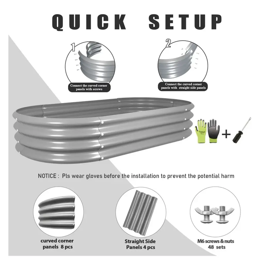 Anybear 12" Tall 4X2ft Oval Metal Raised Garden Bed