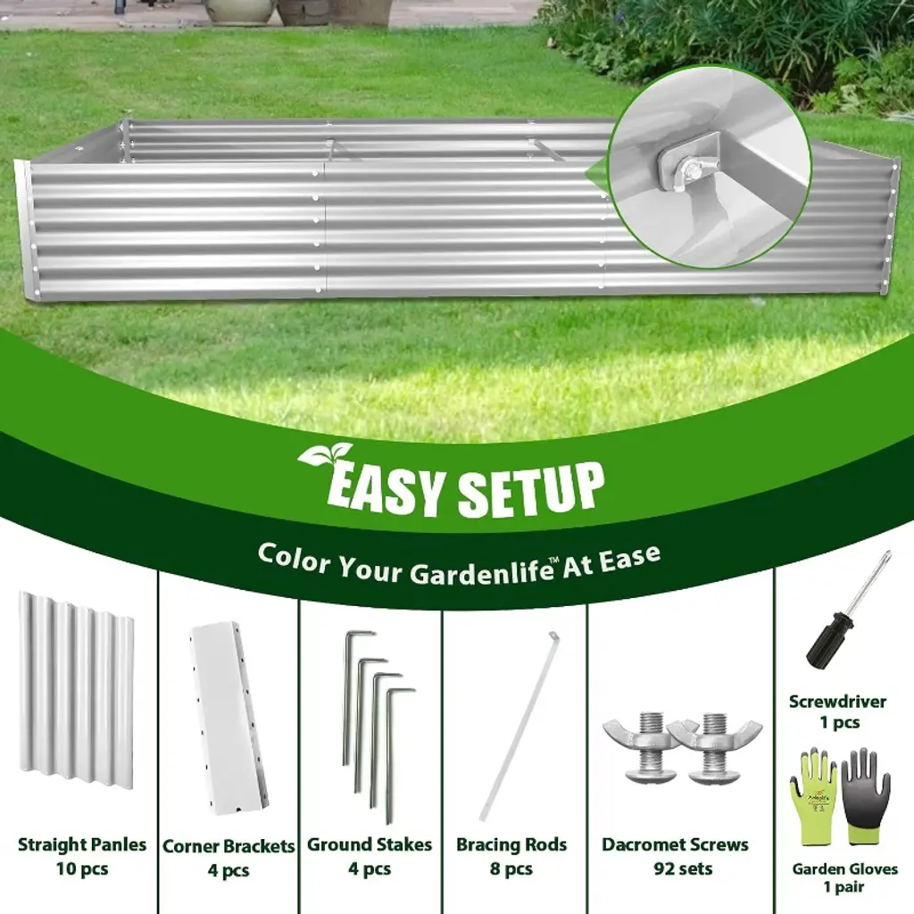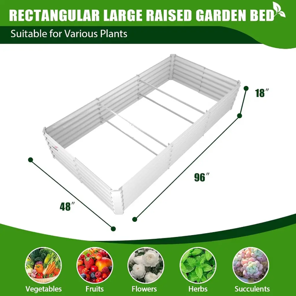 Anybear 8X4x1.5ft Antique White Galvanized Rectangular Garden Bed
