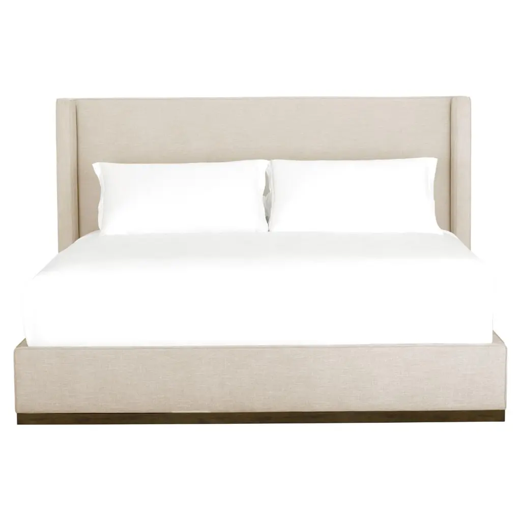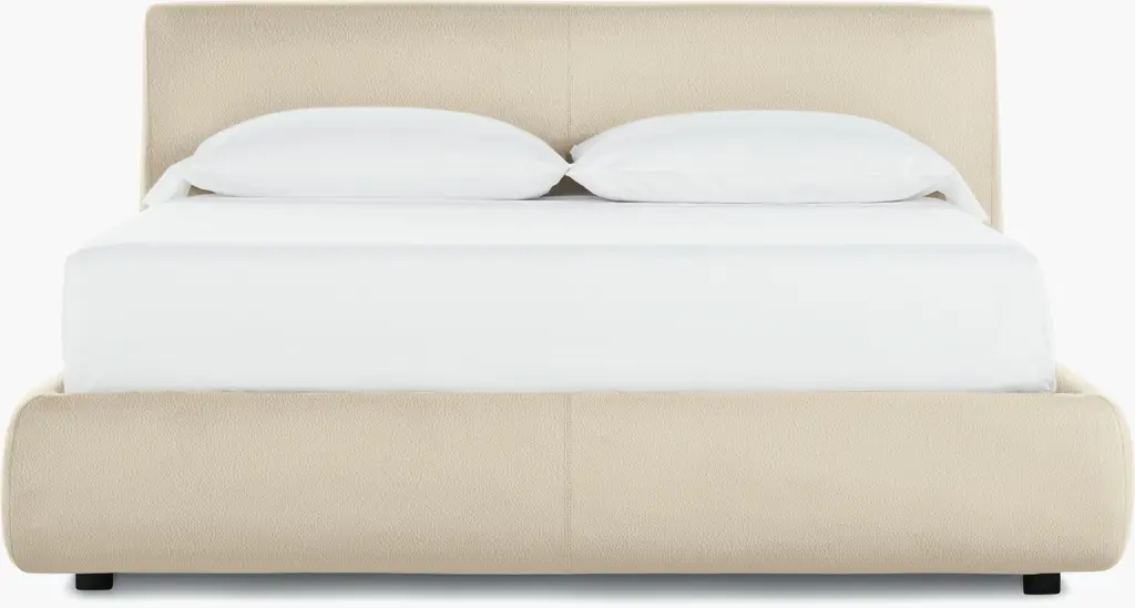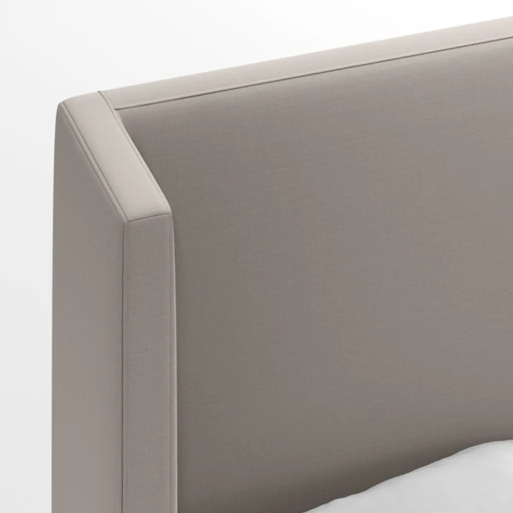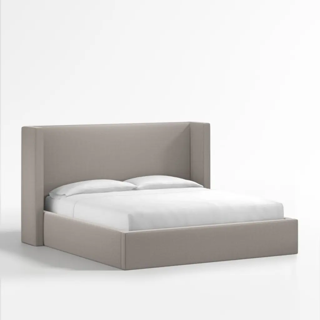 Our Arden bed shelters you within its luxe, fully upholstered contours. The tall headboard squares the traditional wingback silhouette with right angles, accentuating the bed's eye-catching proportions and clean lines. Topstitching lends a tailored look to the poly-linen fabric in graphite grey. The Arden upholstered bed is a Crate & Barrel exclusive.